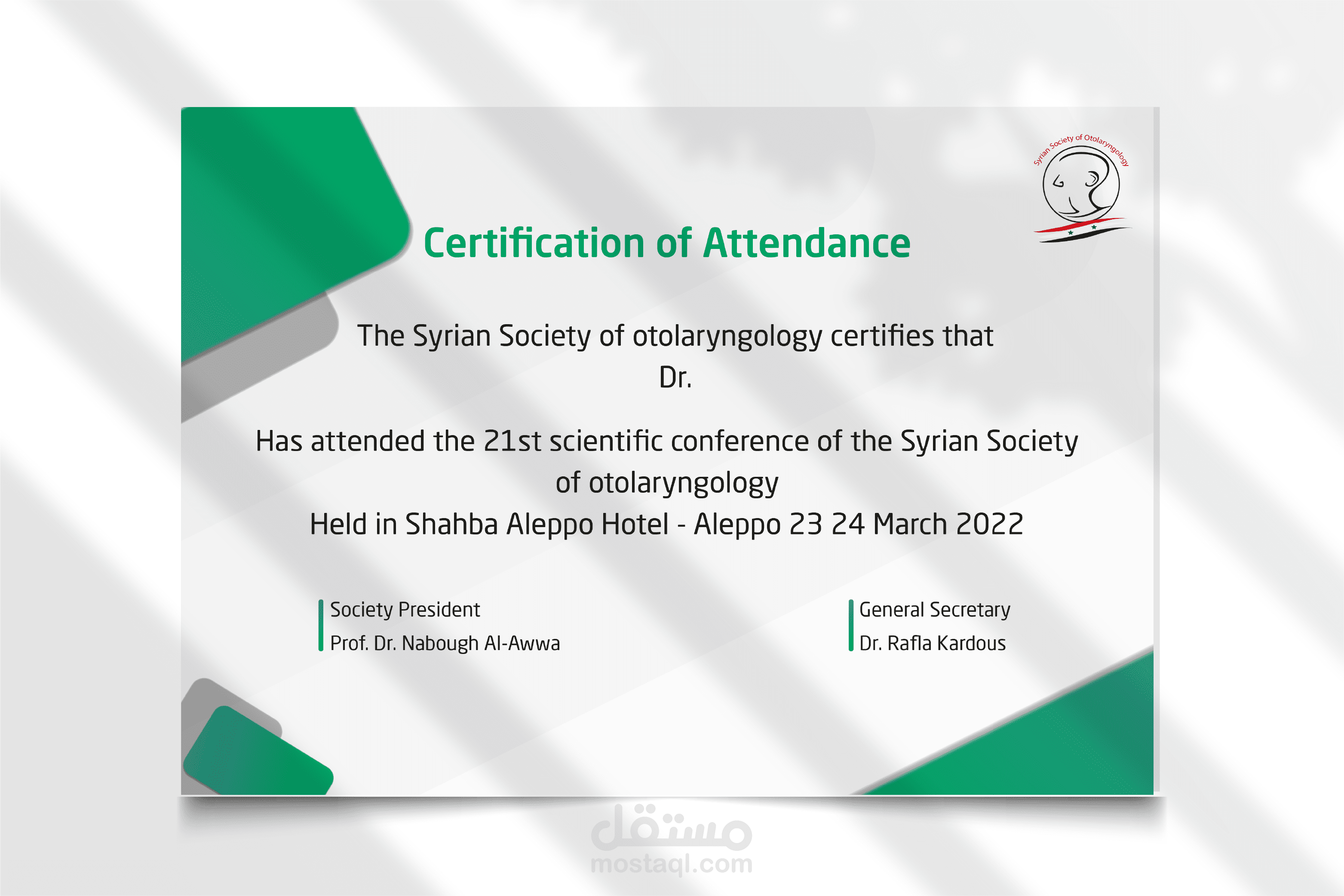 - تم تصميم هذه الهوية البصرية لمؤتمر أطباء الأذن والأنف والحنجرة الذي أقيم على مستوى كامل الدولة السورية