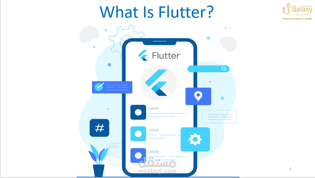 نموذجان لعرض تقديمي عن دورة XD، ودورة Flutter