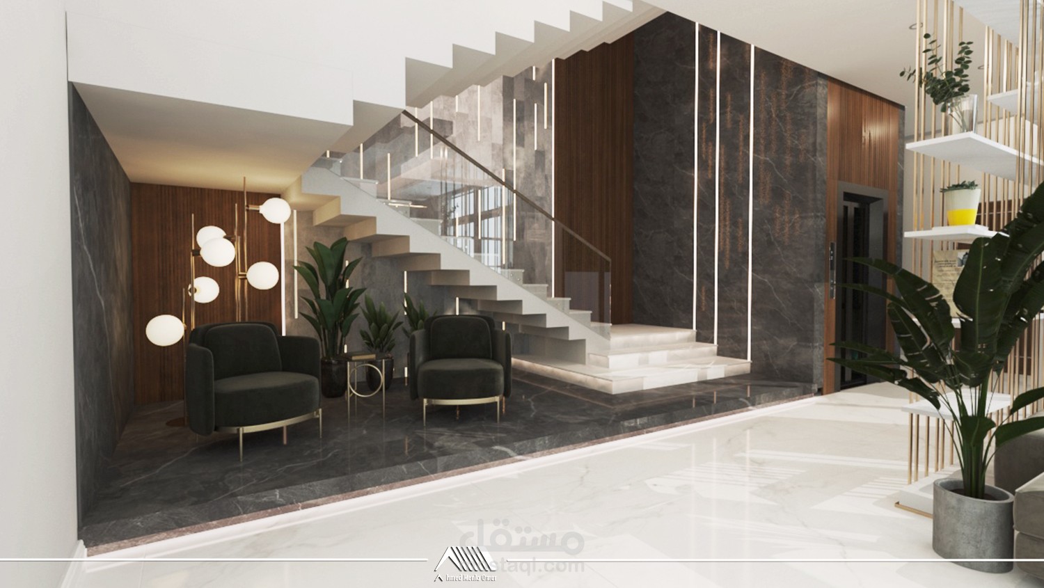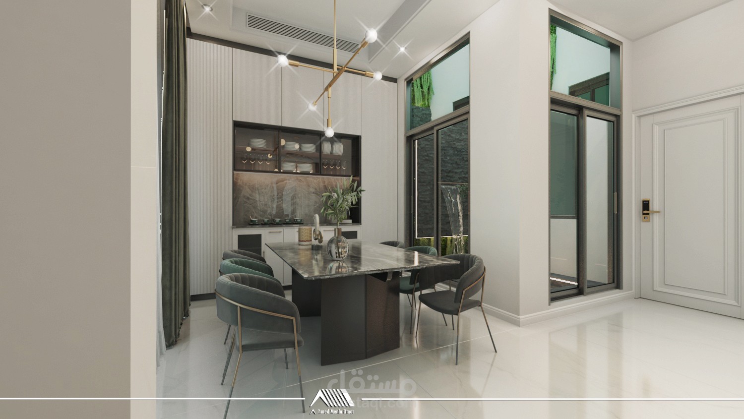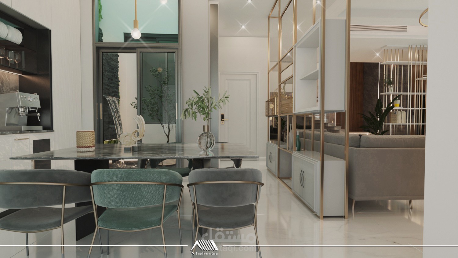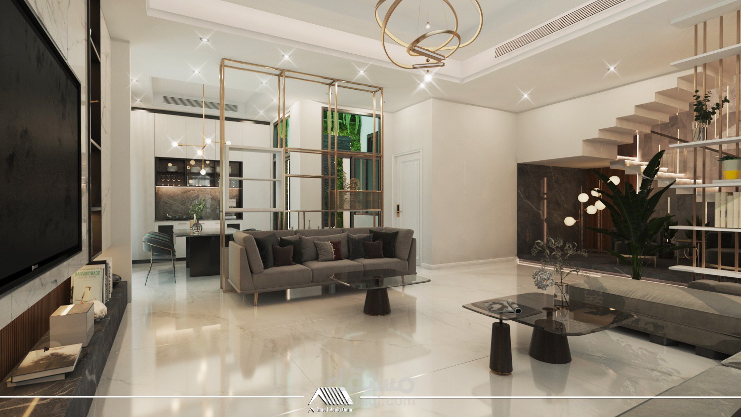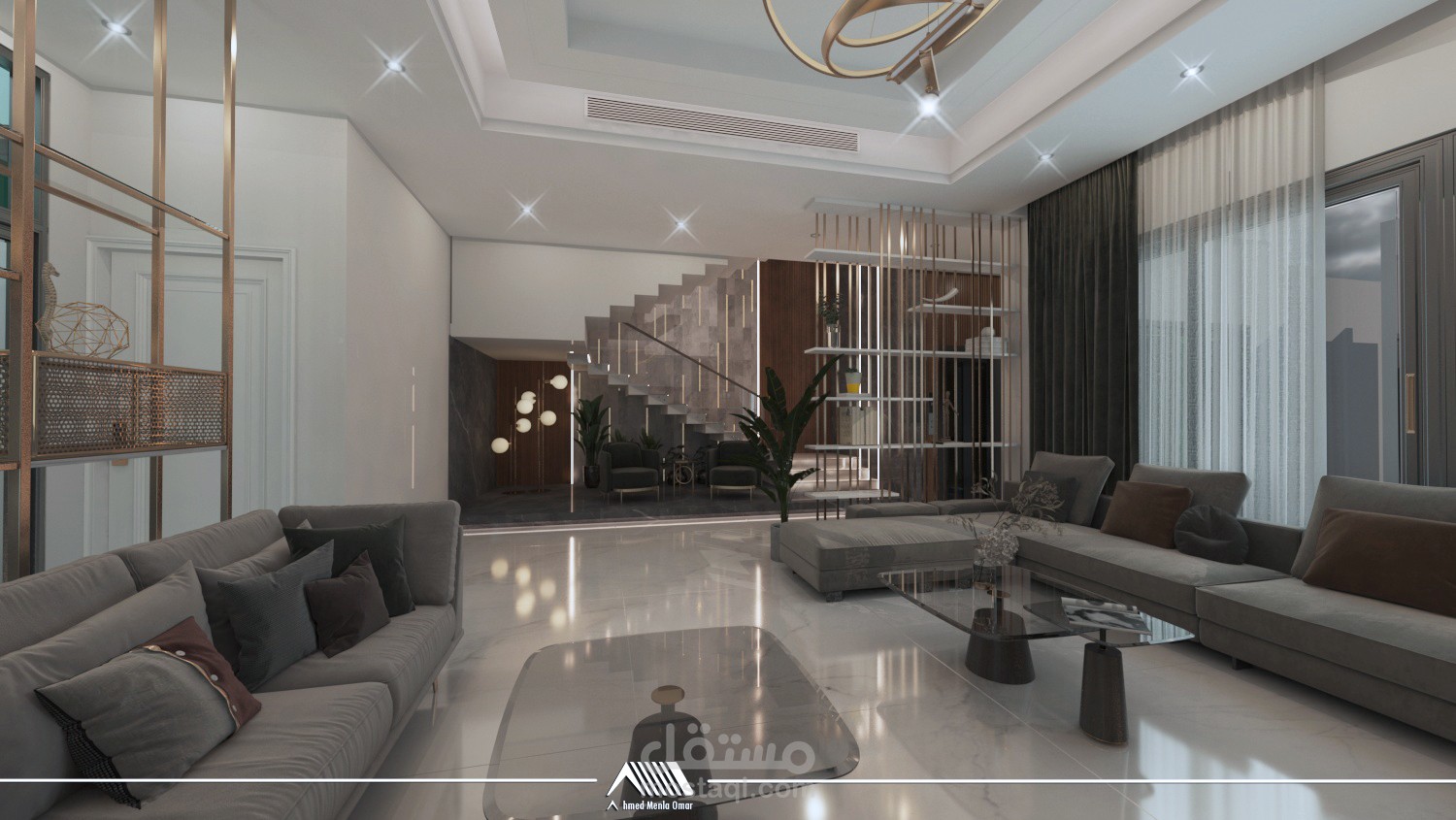 تصميم داخلي لمساحات محددة ضمن فيلا باستخدام ستايل مودرن