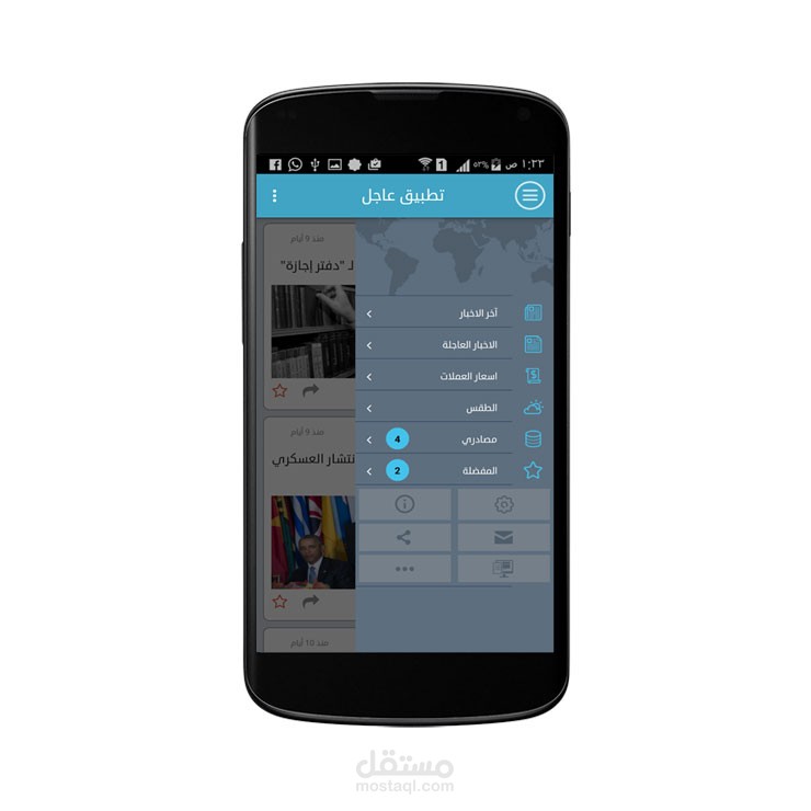 تطبيق عاجل يوفر للمتابعين الاخبار العاجلة و الاخبار اليومية من مصادرها المتعددة، حيث يوفر على المستخدمين الوقت في تتبع المواقع الاخبارية المتنوعة كل ما عليه هو فقط اضافة المصادر التي يود متابعتها و يقوم التطبيق بجلب الاخبار أولا بأول، وكذلك يوفر التطبيق امكانية تتبع الطقس حسب موقع كل مستخدم، كما و يوفر امكانية متابعة اسعار العملات المختلفة حسب تخصيص المستخدم لهذه العملات