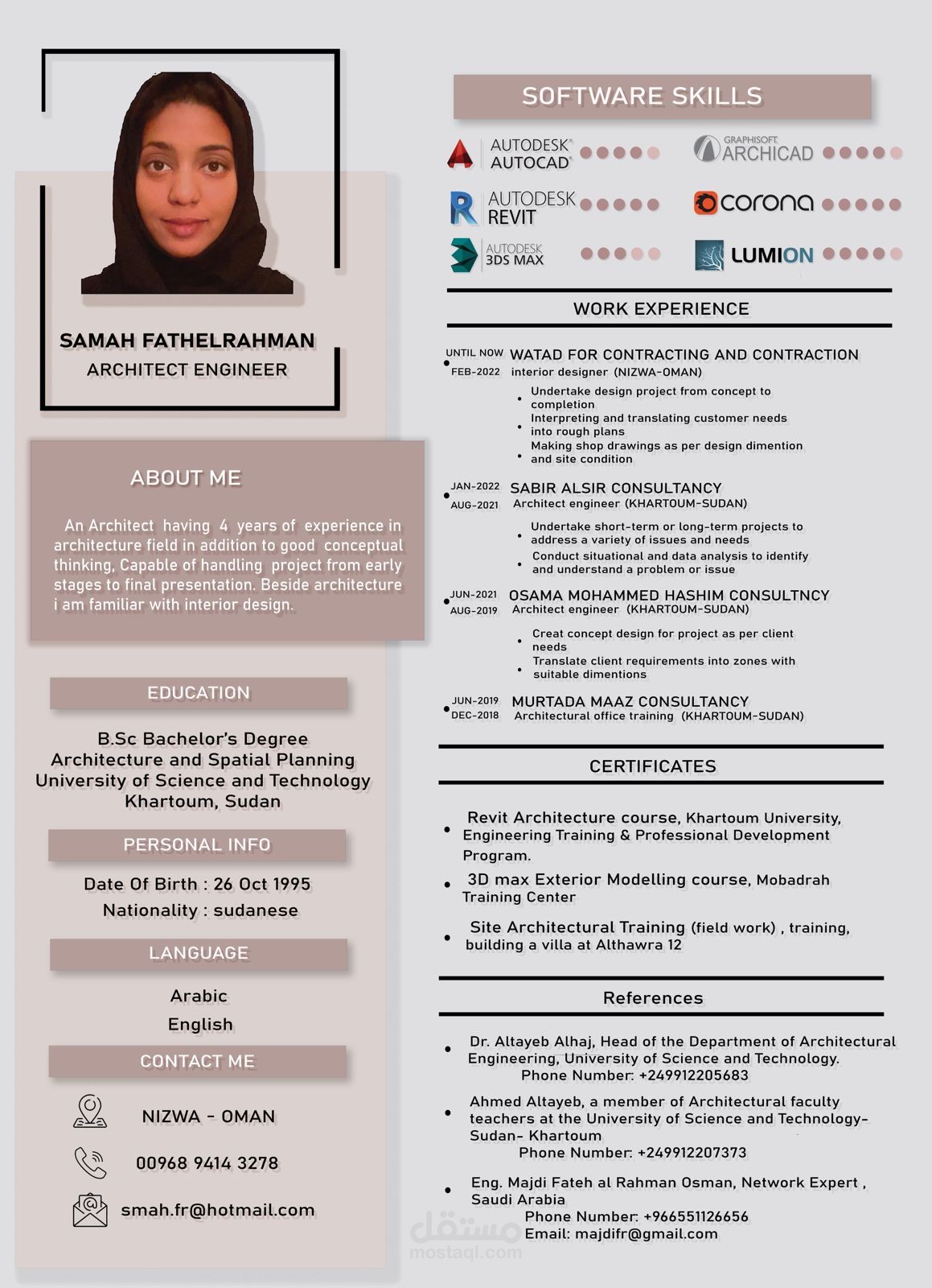 My name is SAMAH AHMED I’m an Architectural engineer with 5