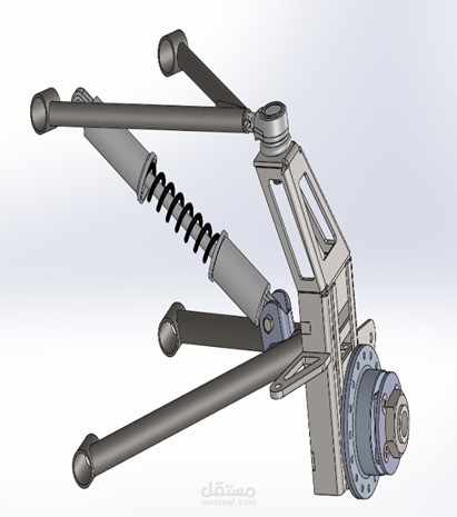 تم تصميم نظام التعليق هذا بعد دراسات عديدة للوصول الى افضل نوع و مواد و ابعاد و مكونات للنظام ثم تم تصميم النظام على برنامج سوليدووركس(SolidWorks) و تم عمل دراسات عديدة على برامج اخرى مثل Ansys و Catia.