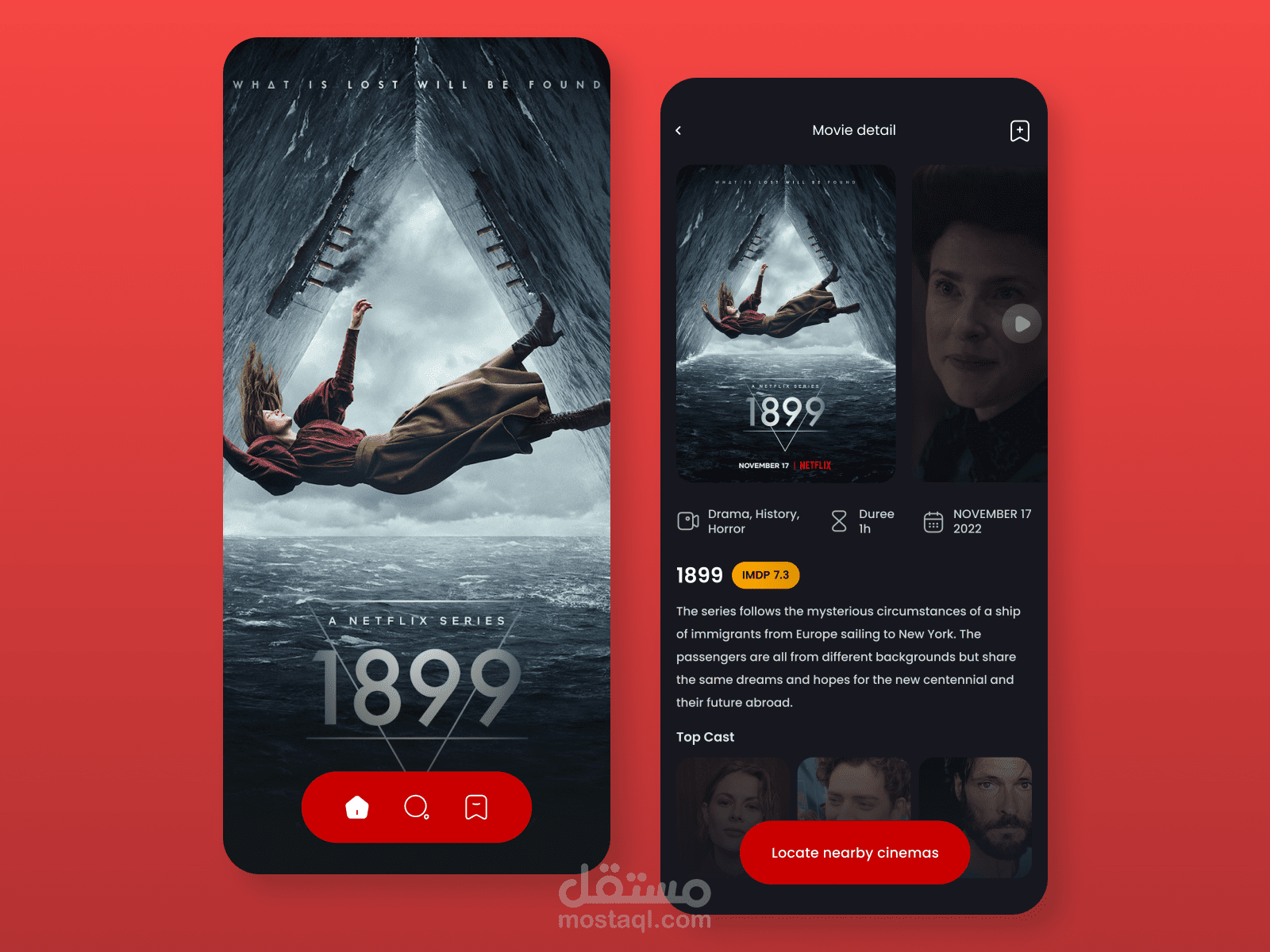تصميم واجهة مستخدم لتطبيق من خلاله يمكنك الإطلاع على اخر الافلام و إضافتها الى قائمة المفضلات