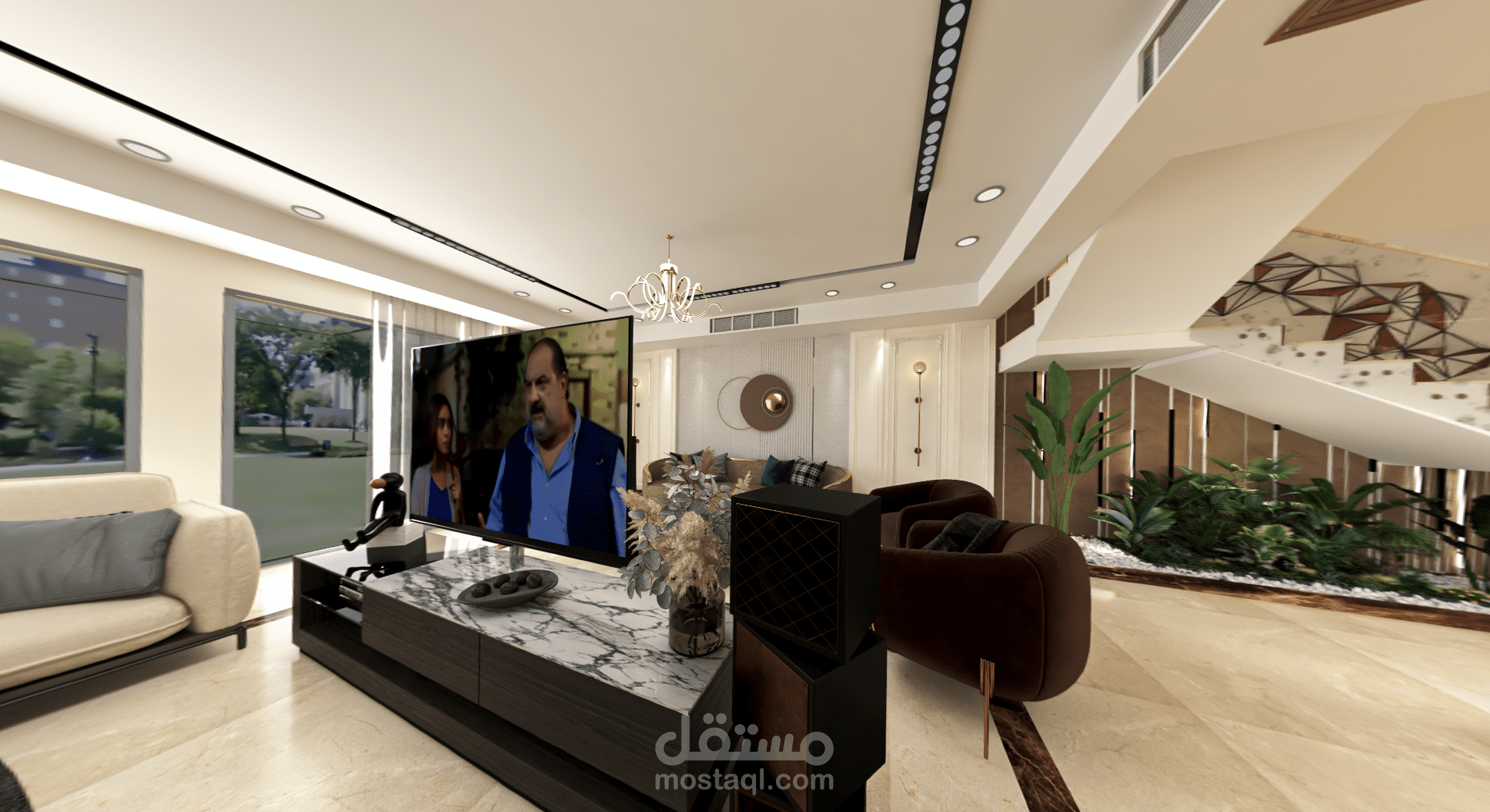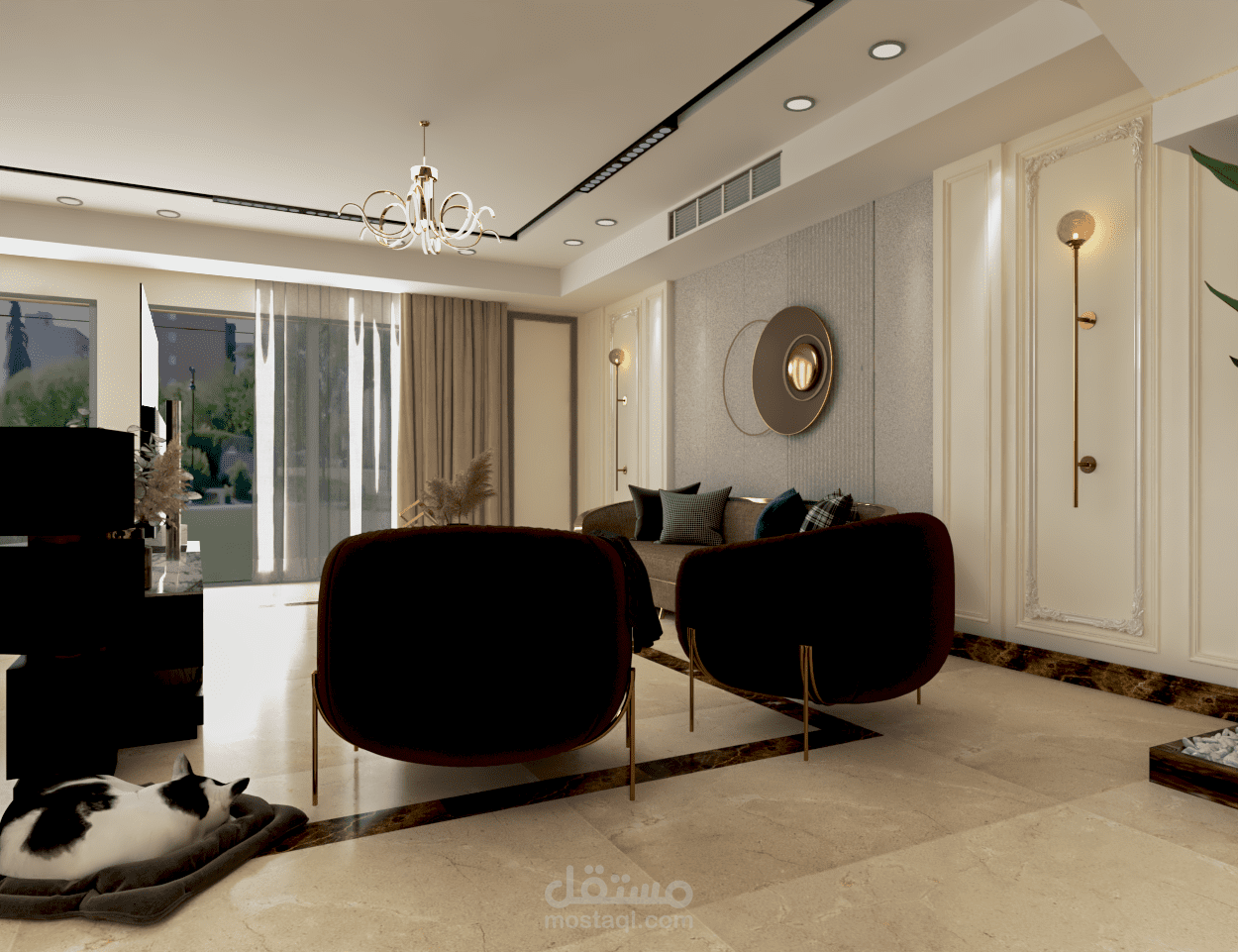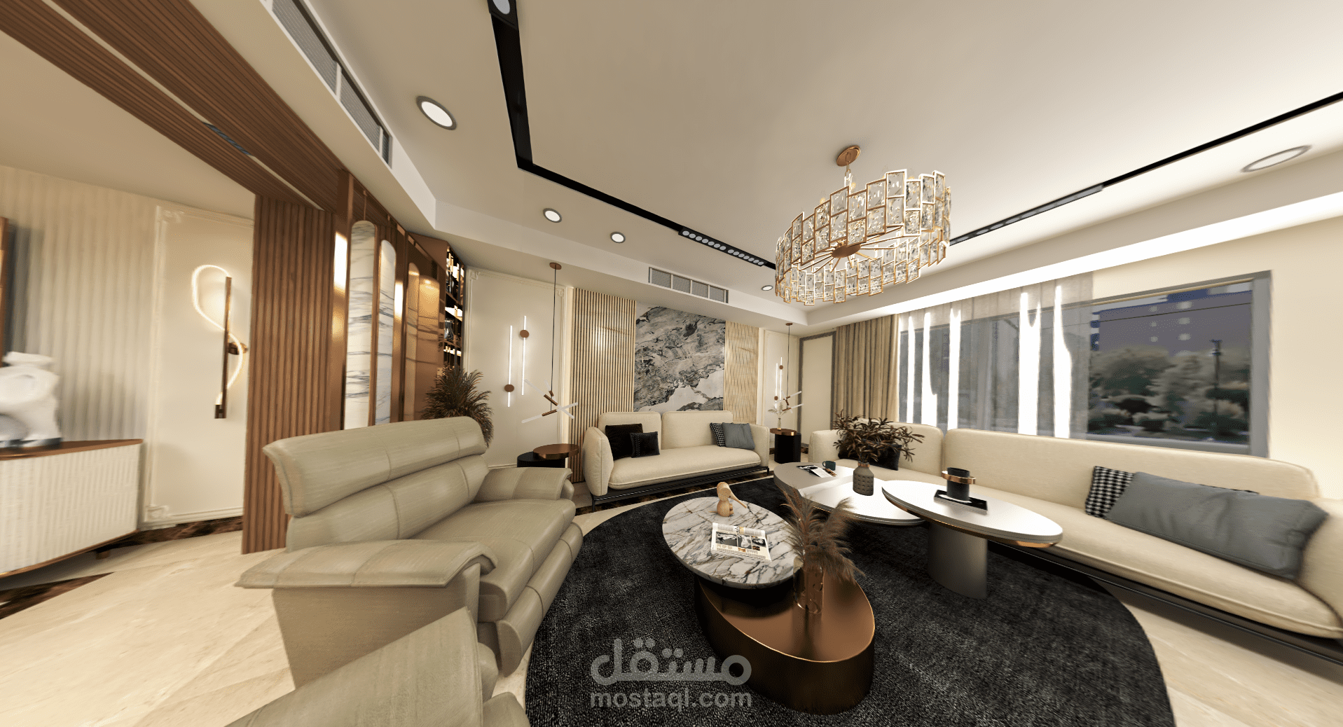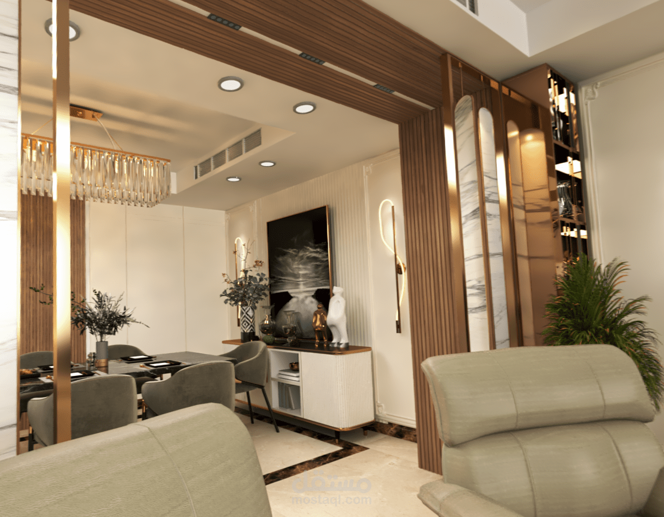 عمل تصميم لغرفة معيشة و استقبال و طعام