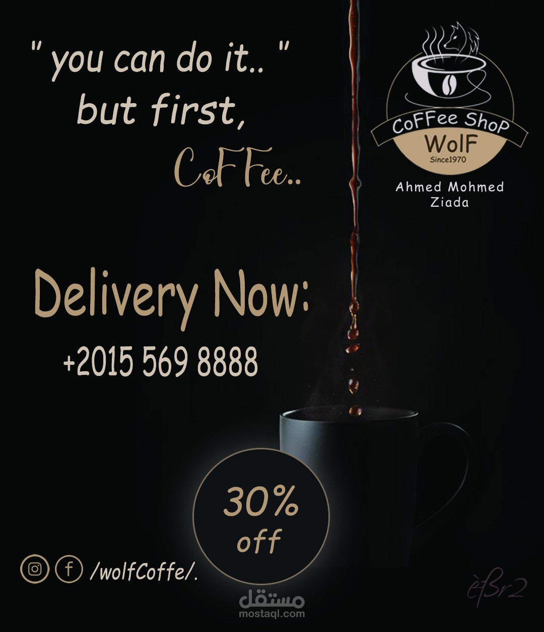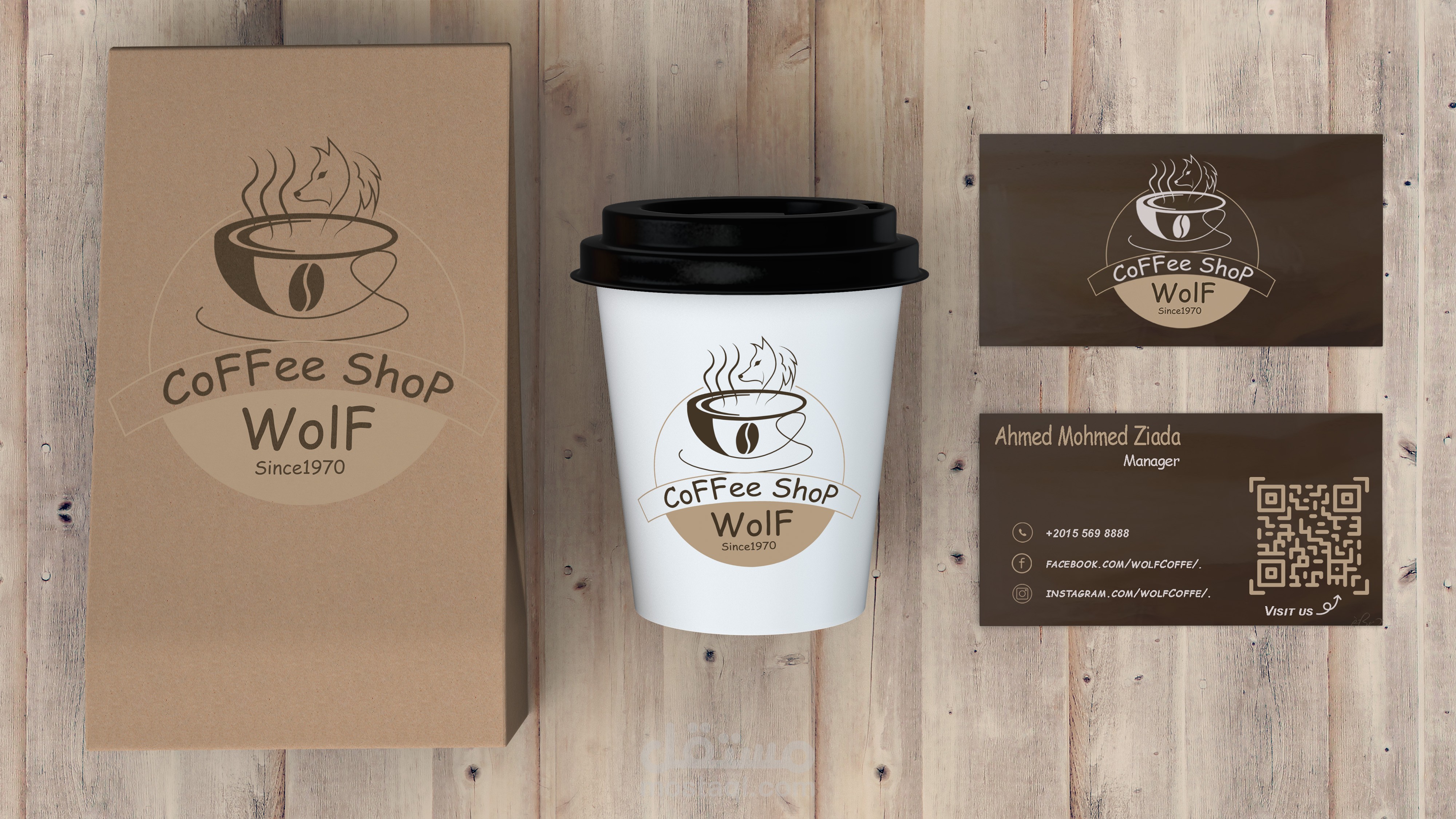 هذا العمل يحتوي هو عمل هوية بصرية لمقهي يسمي ب (Wolf)