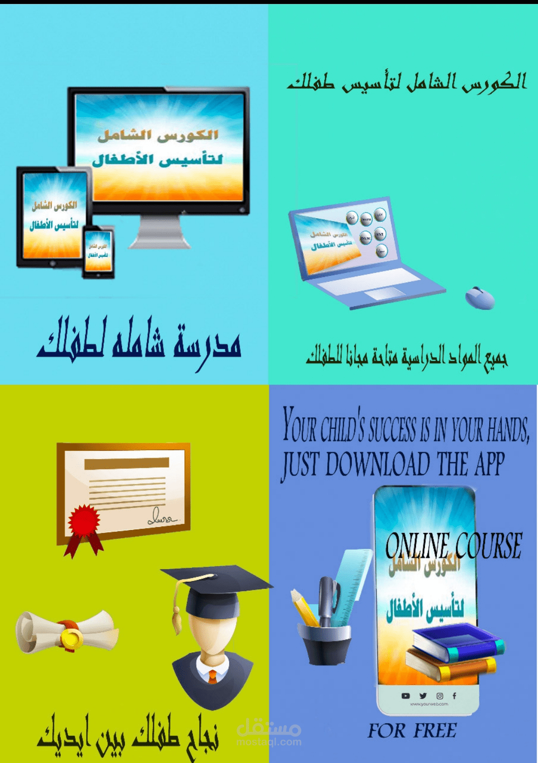 تصاميم سوشيال ميديا خاصة بالتعليم ..تم تنفيذ المشروع من حوالي عامان ..باستخدام الوان تجذب الأطفال ..