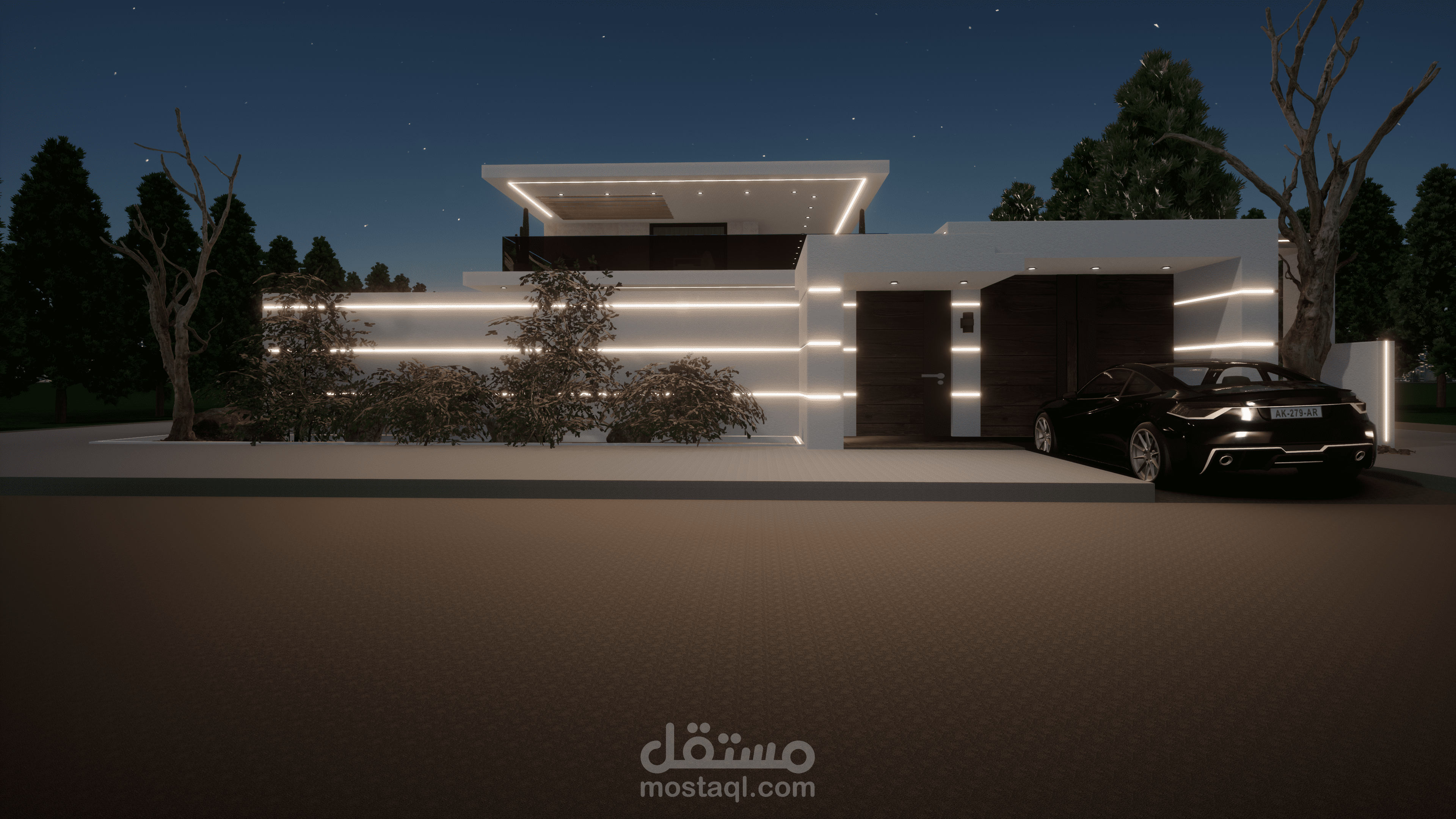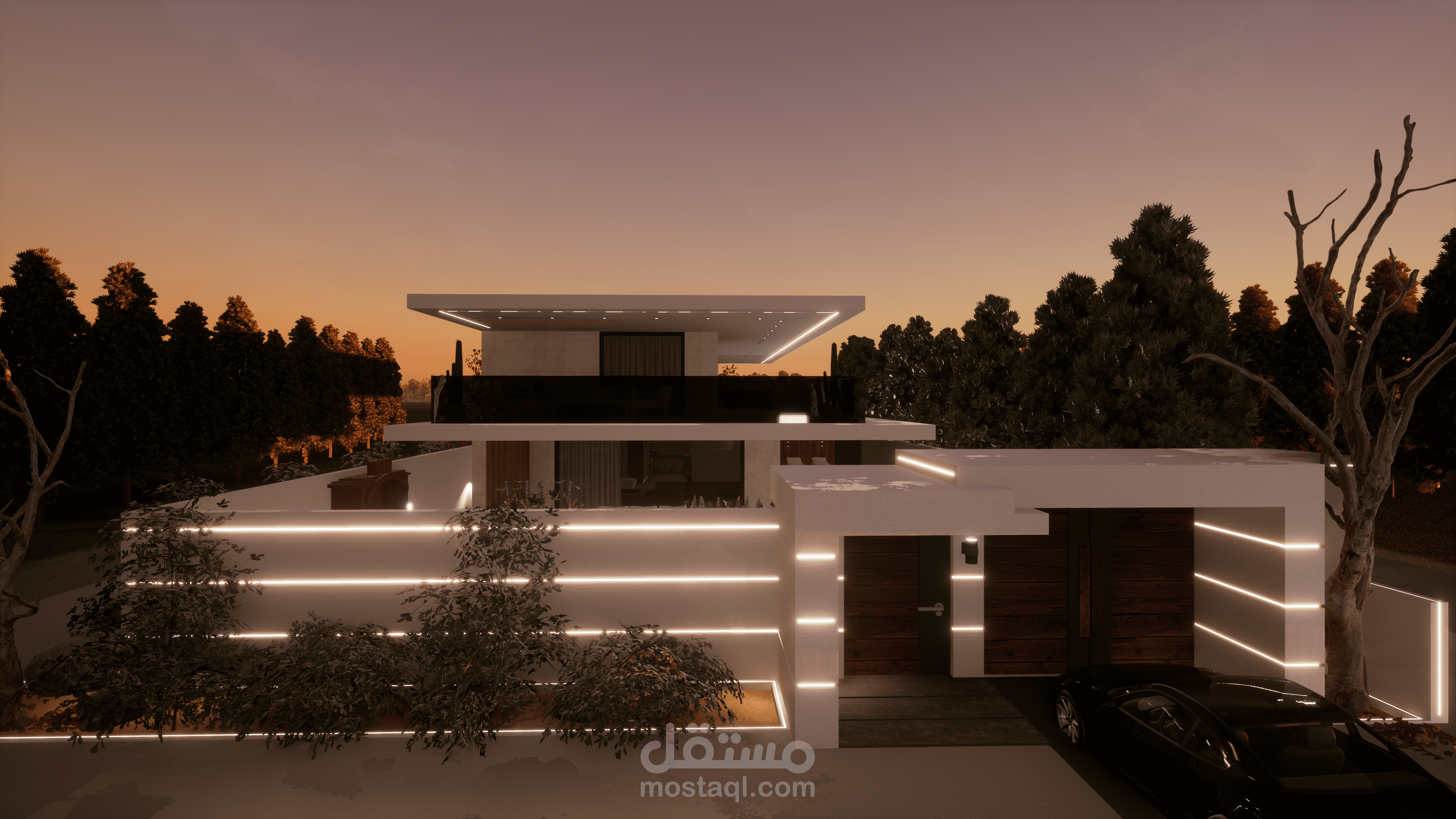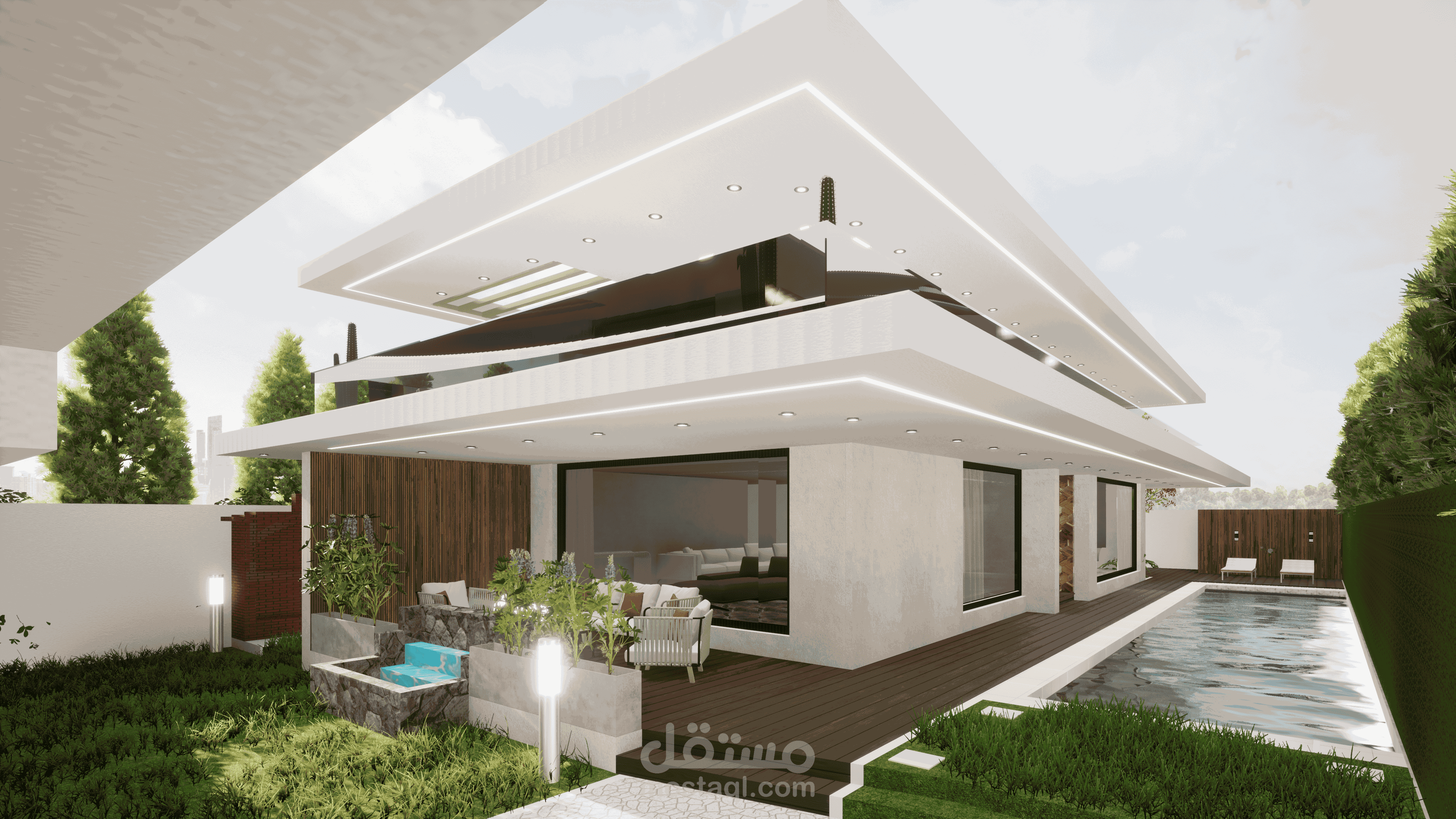 تصميم شاليه مكون من طابقين أرضي وطابق أول ، على أرض أطوالها 30*15 م ،تصميم خارجي + المخطط