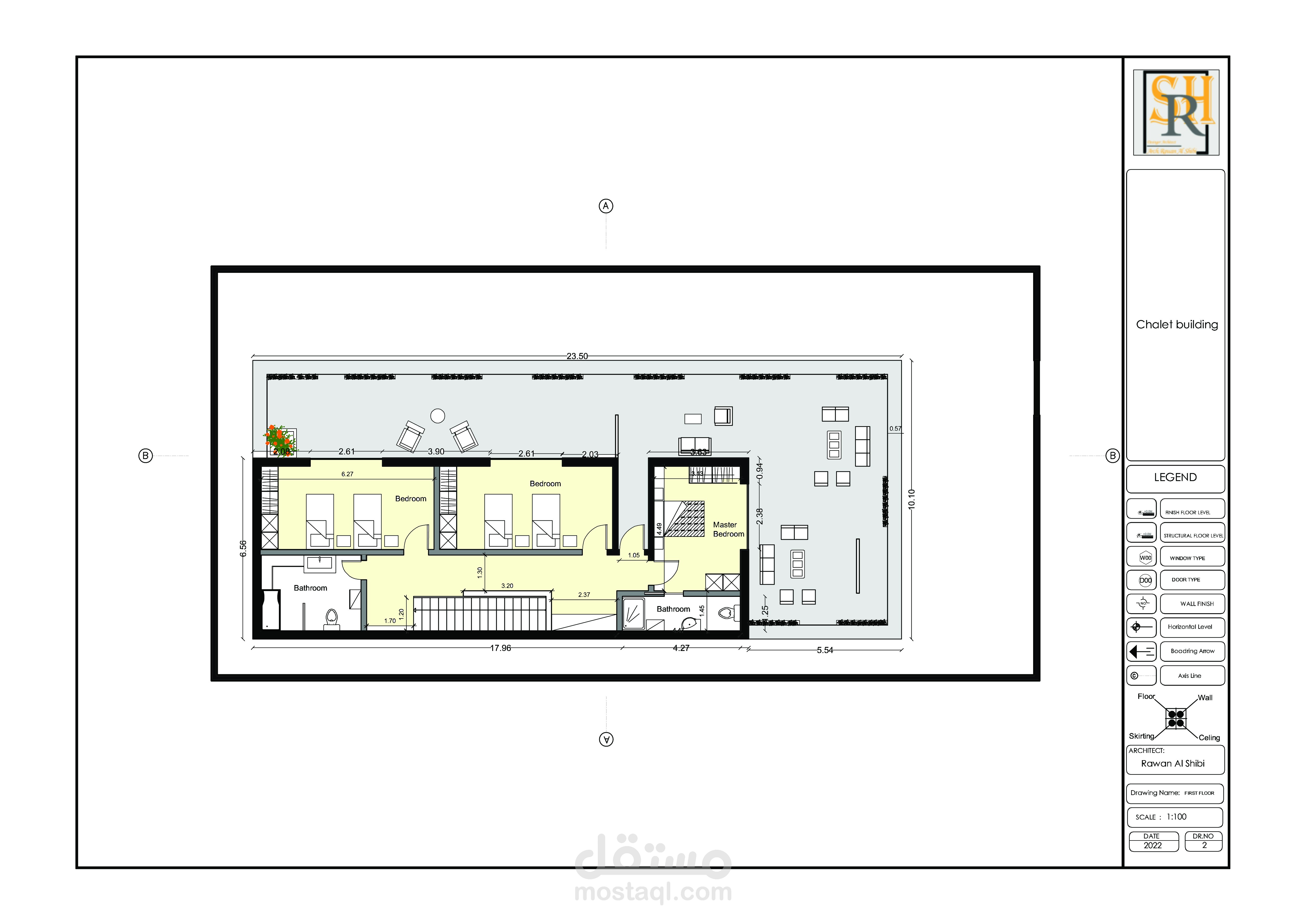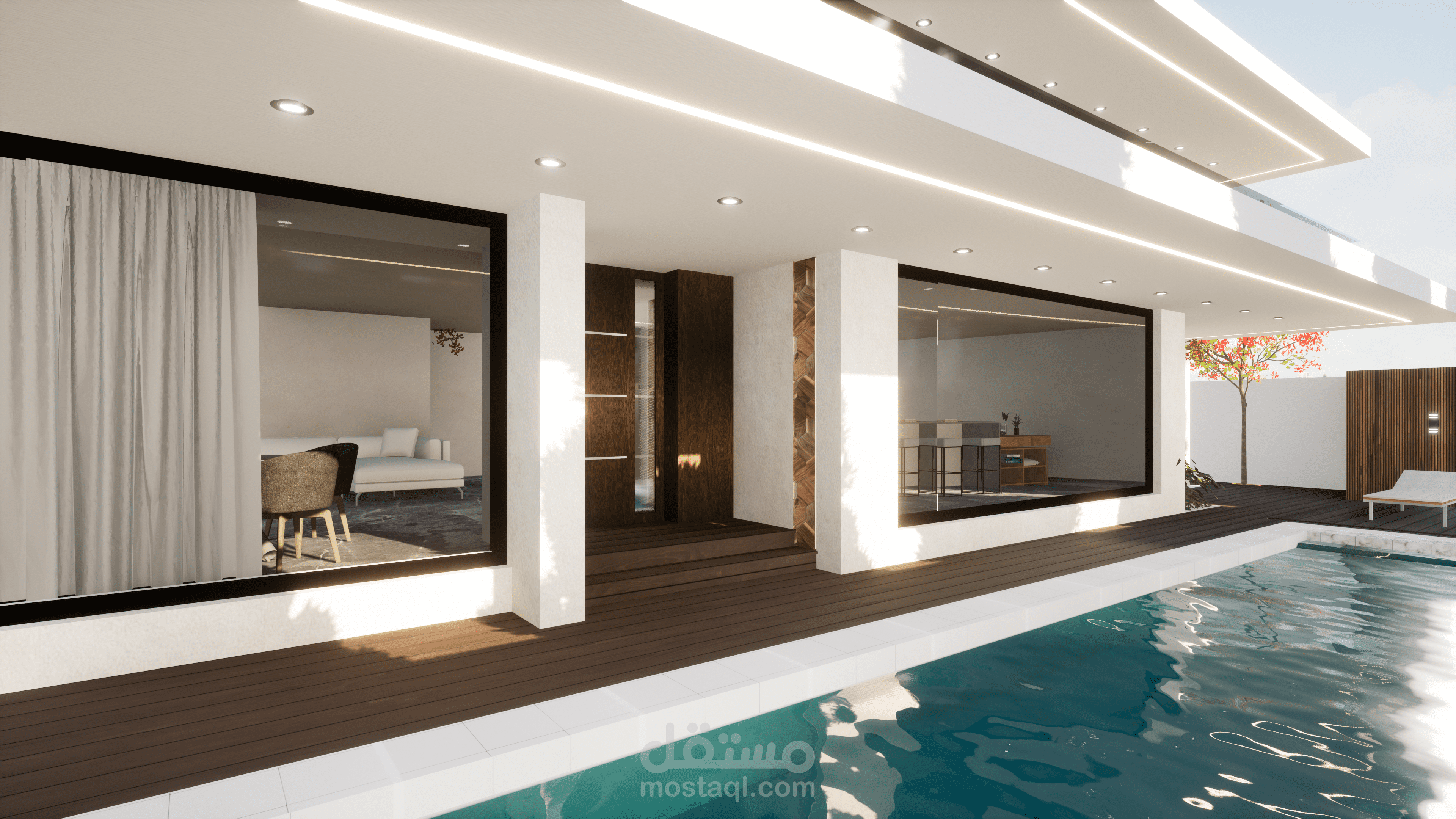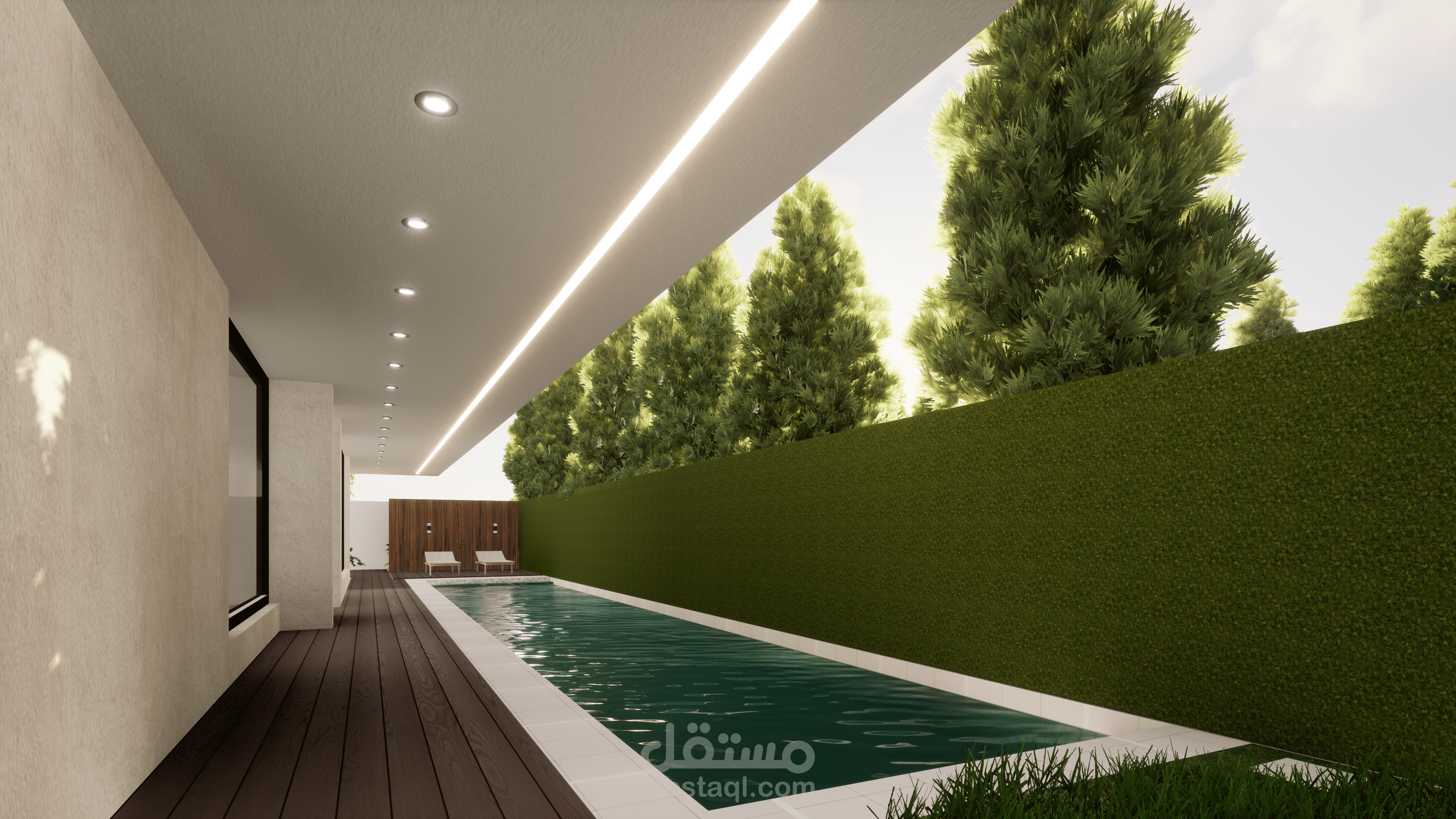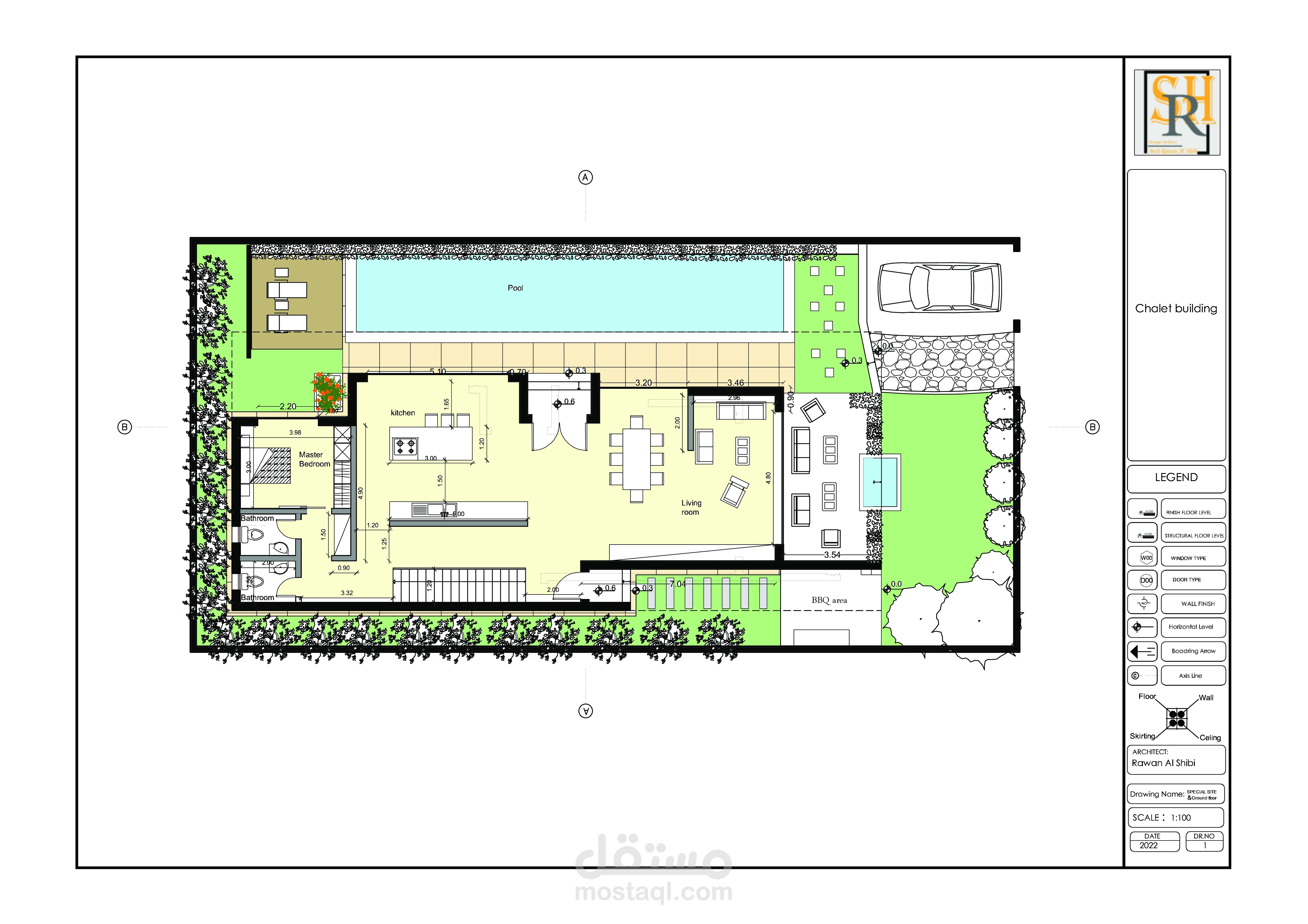تصميم شاليه مكون من طابقين أرضي وطابق أول ، على أرض أطوالها 30*15 م ،تصميم خارجي + المخطط