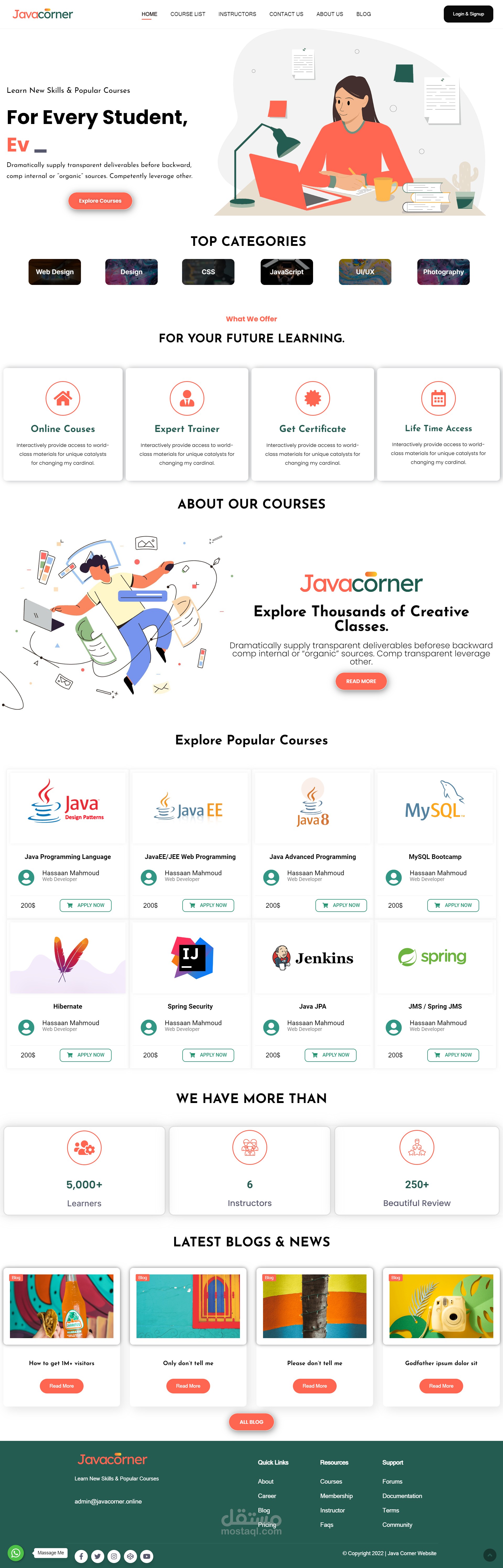 Java Corner LMS Website