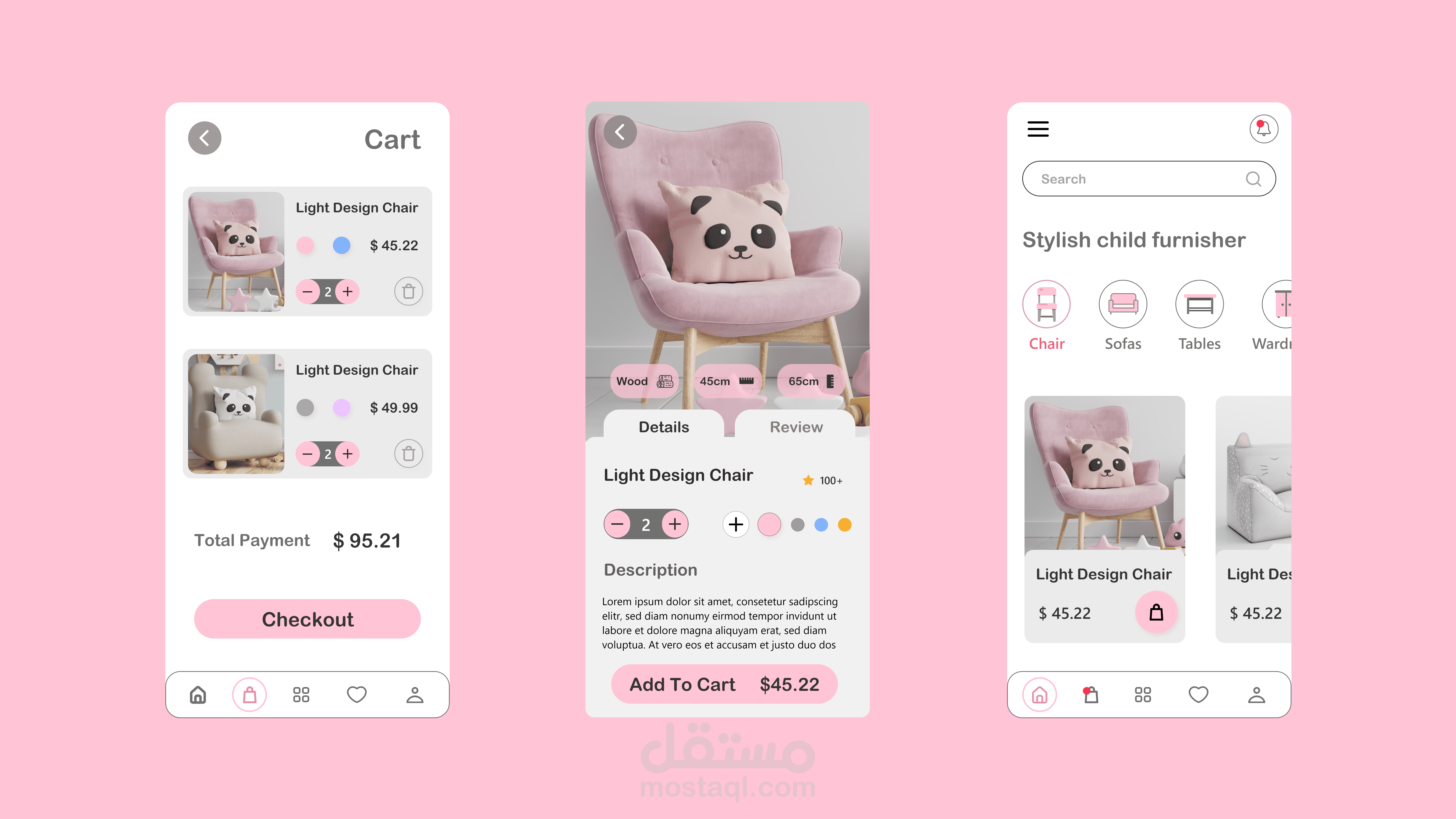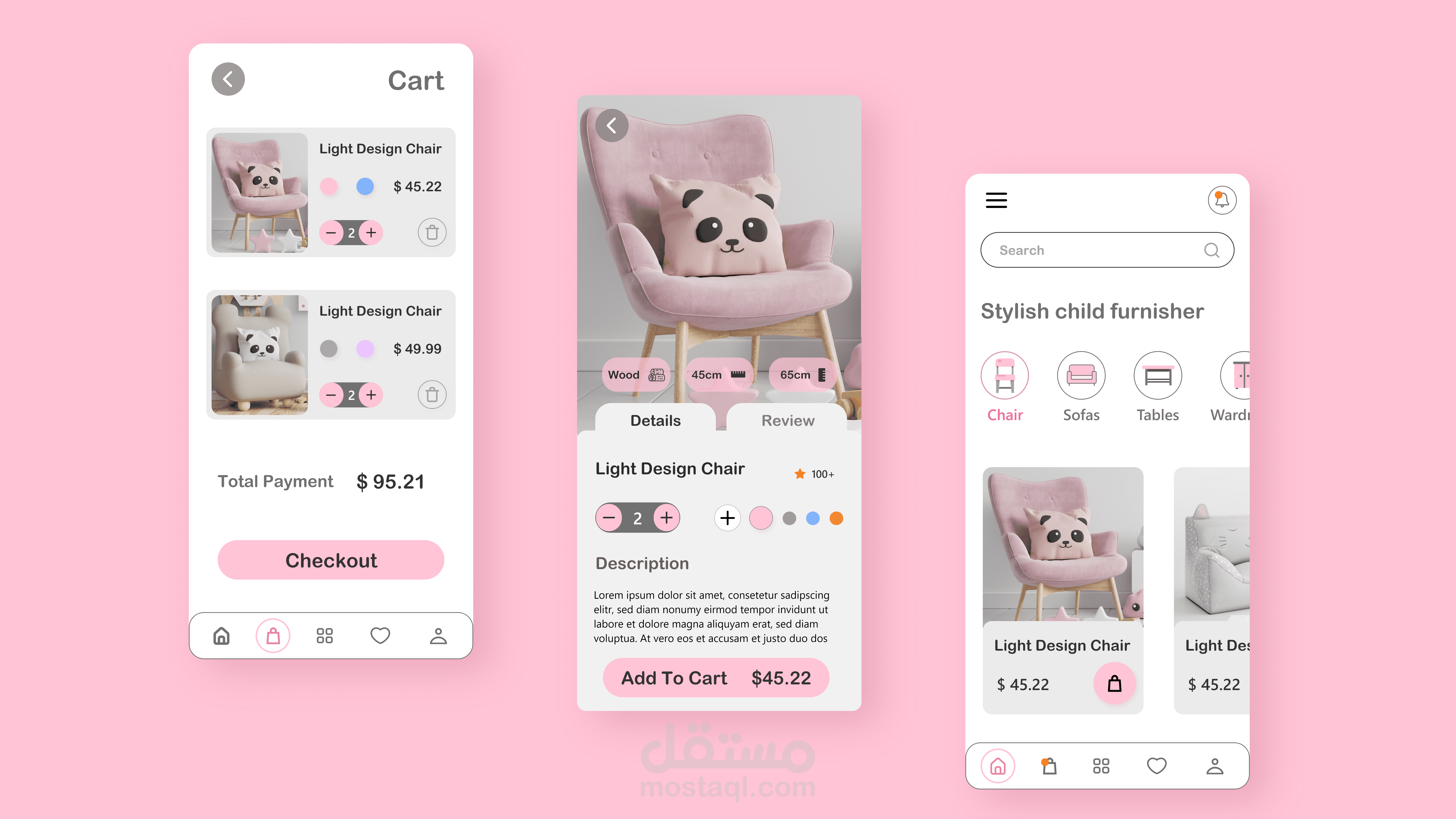 children's furniture eCommerce app design