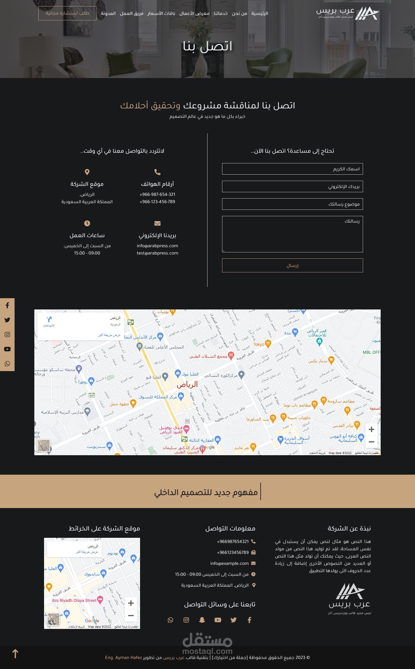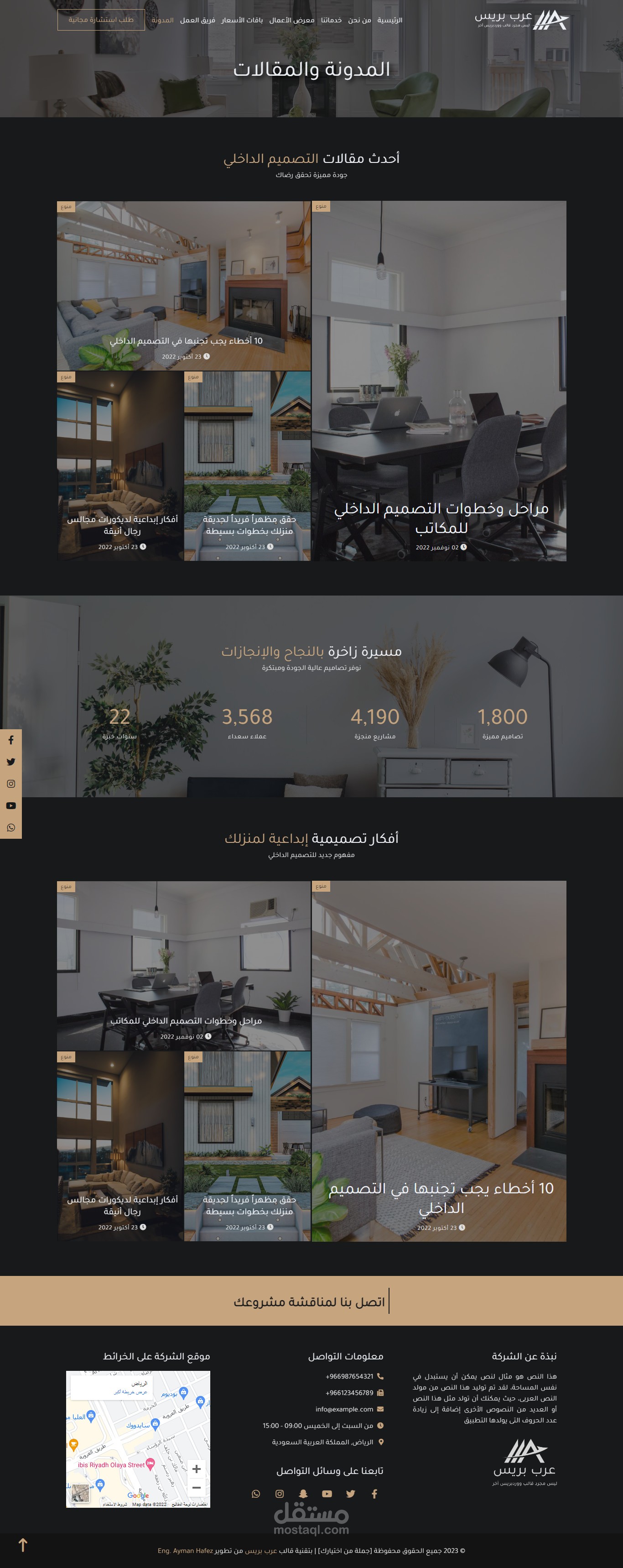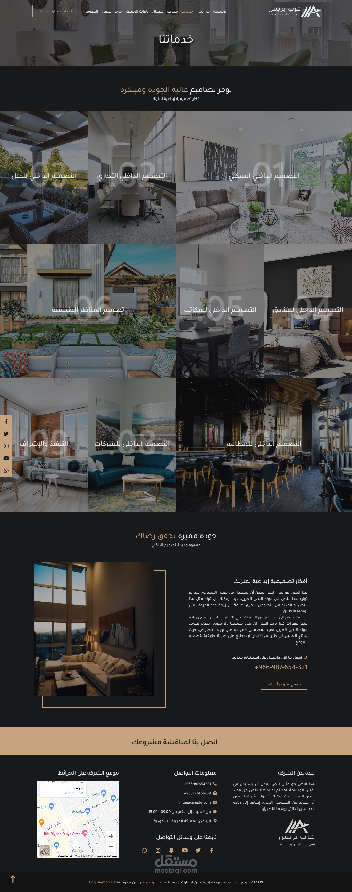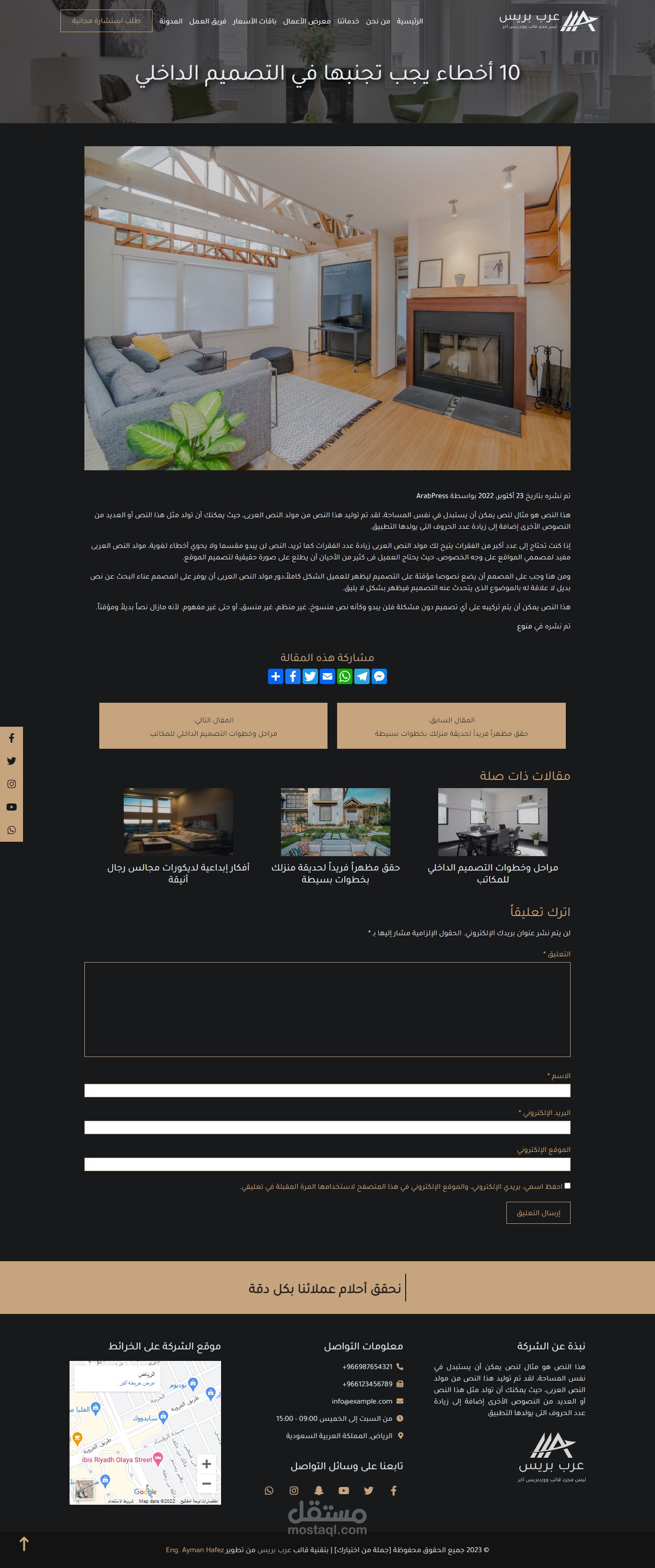 نموذج موقع إلكتروني لشركة تصميم داخلي وهو أحد نماذج قالب عرب بريس المتوفر حالياً على متجر بيكاليكا..
