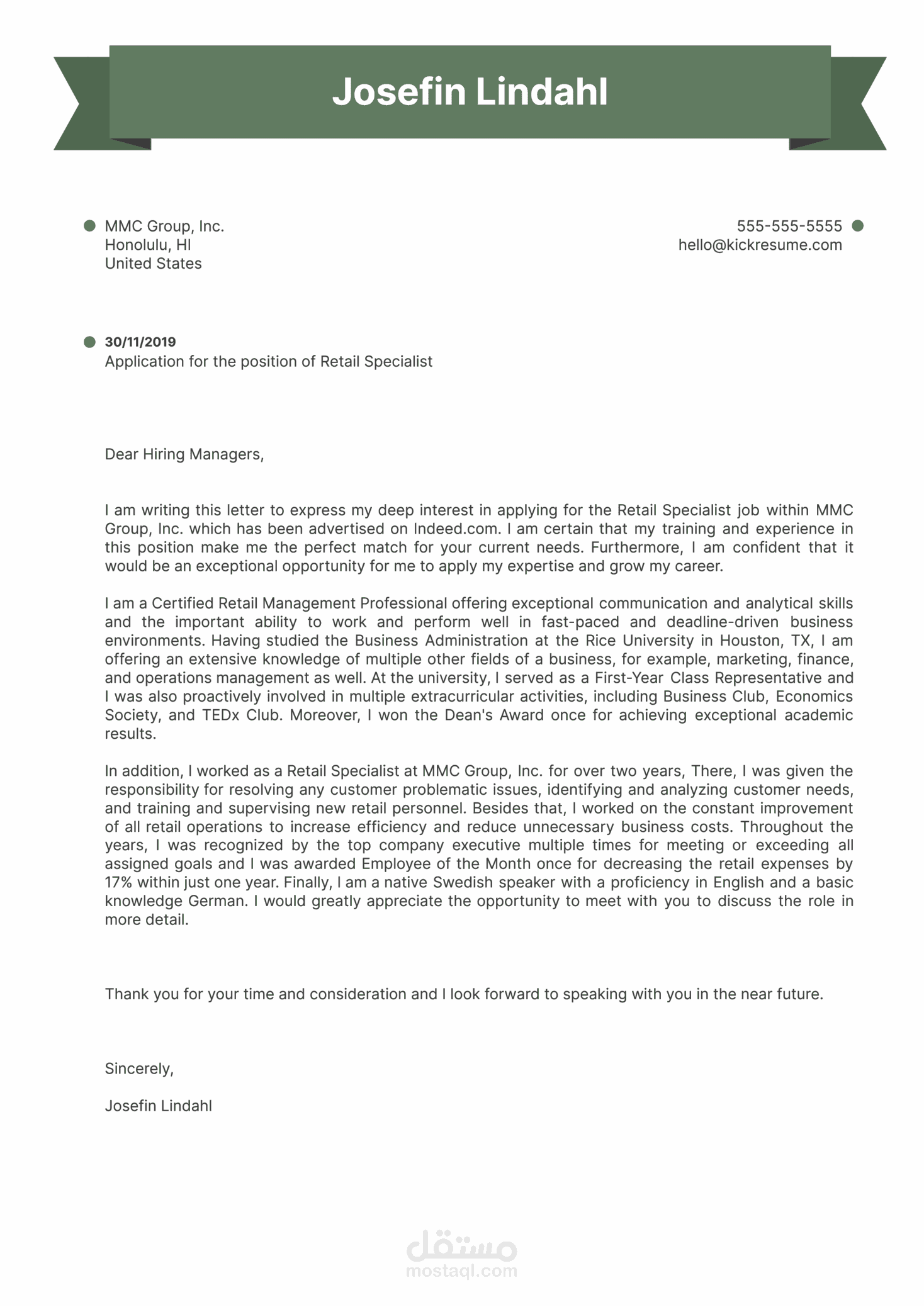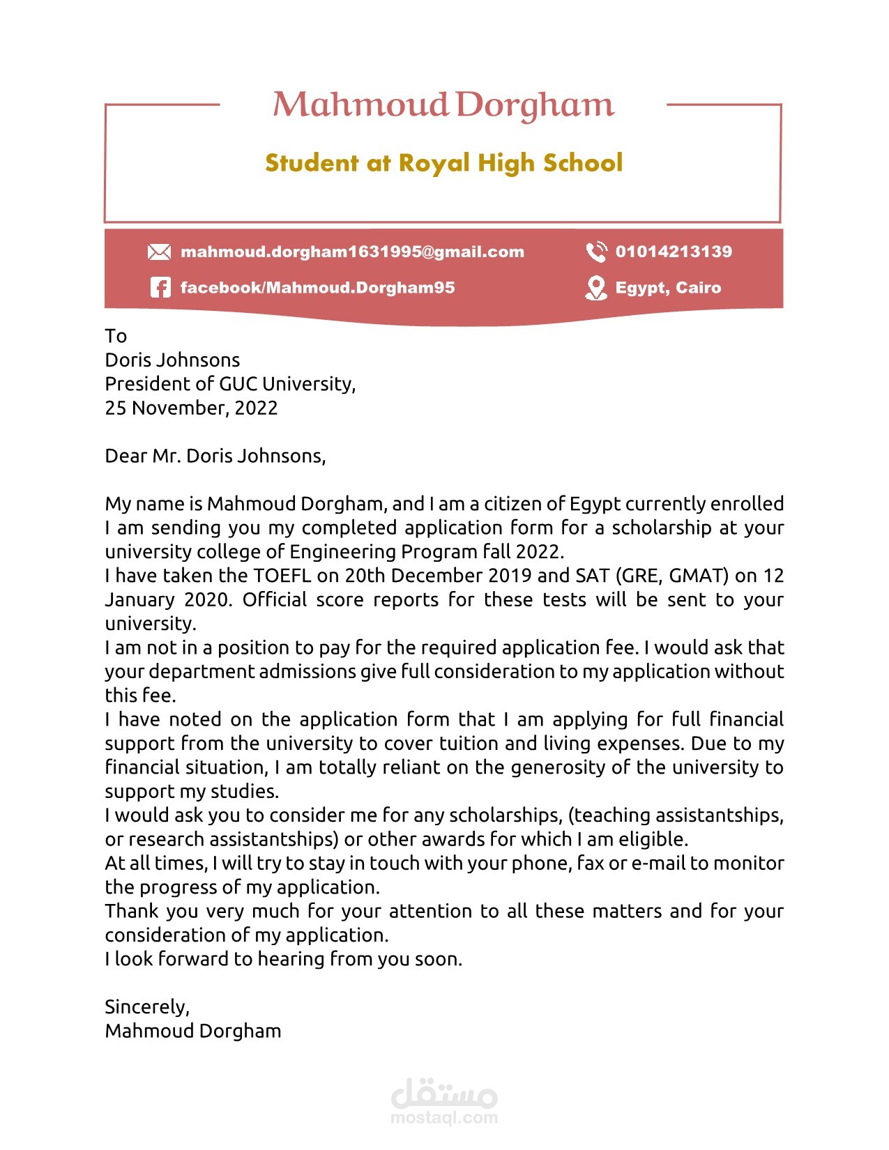 عمل Cover Letter إحترافية