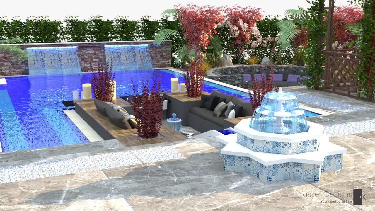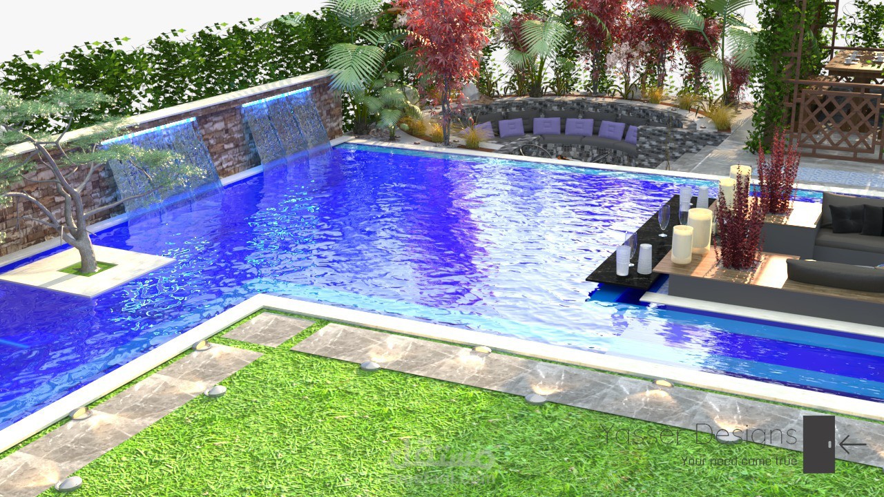 تصميم حمام سباحه و حديقه لفيلا بالقاهره