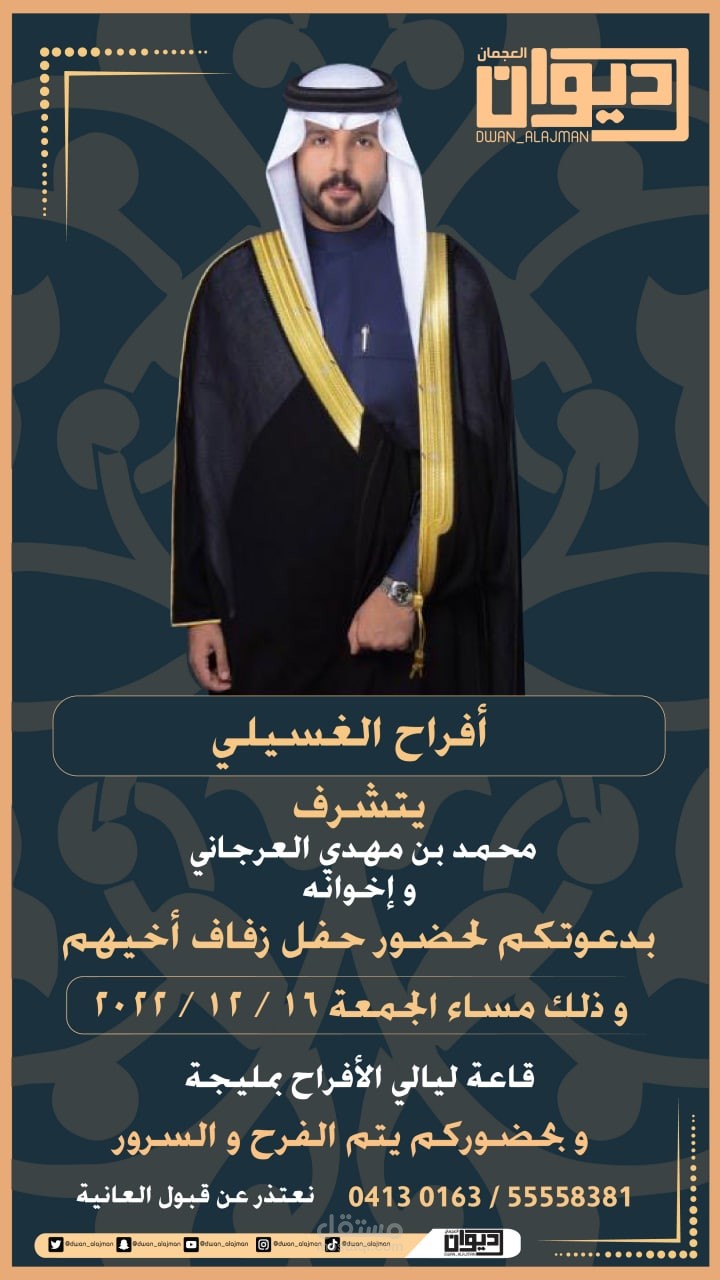 تصاميم تهنئةو دعوات زواج لصالح ديوان عجمان