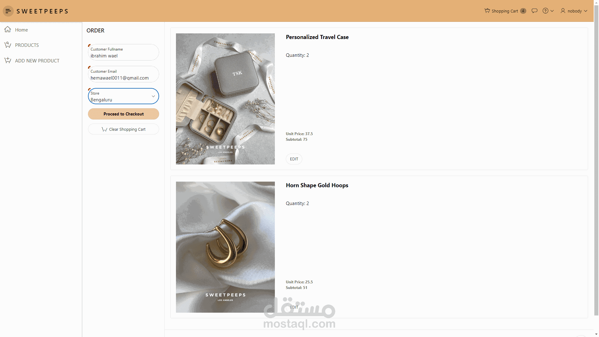 يتم عرض المنتجات على الموقع: اسم المنتج والسعر والتفاصيل.