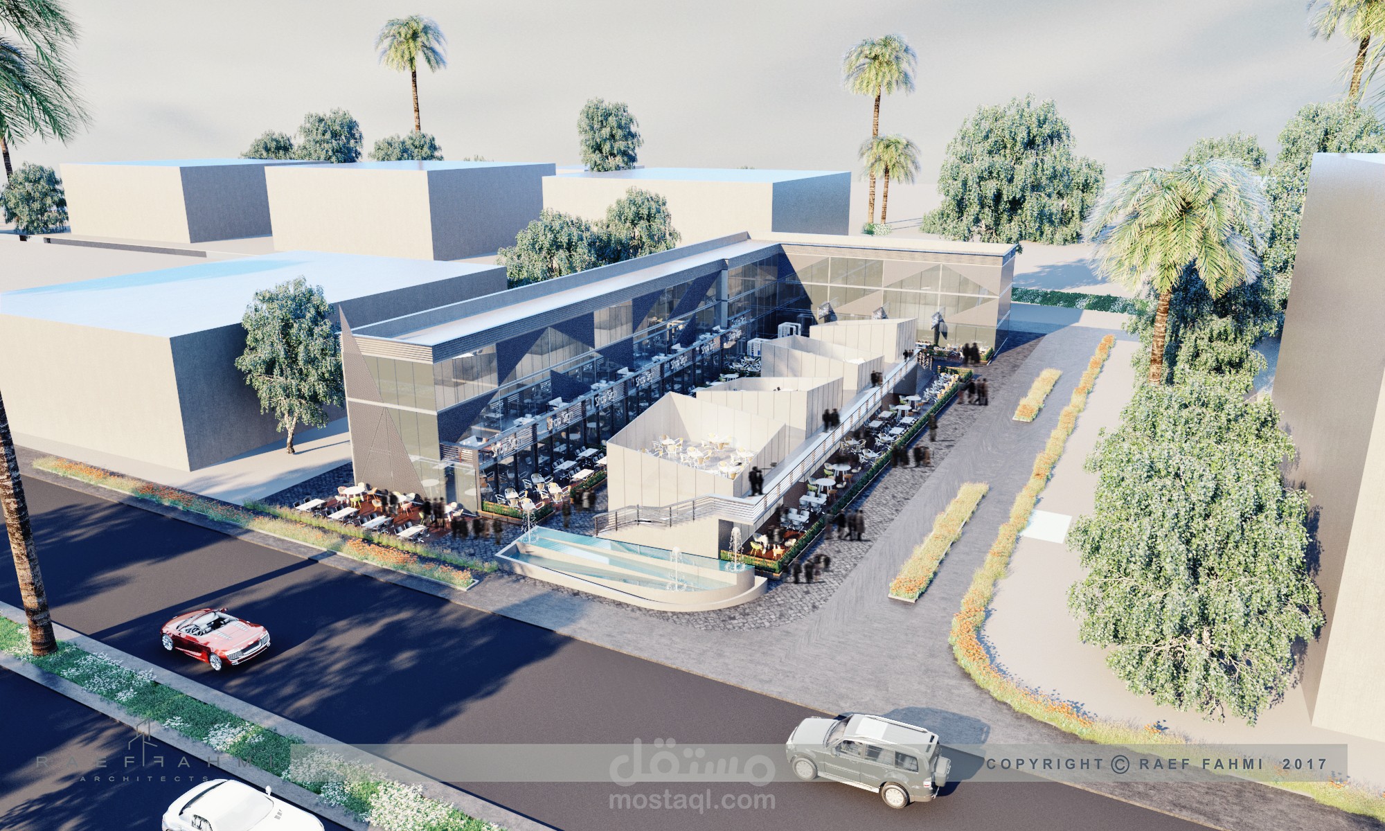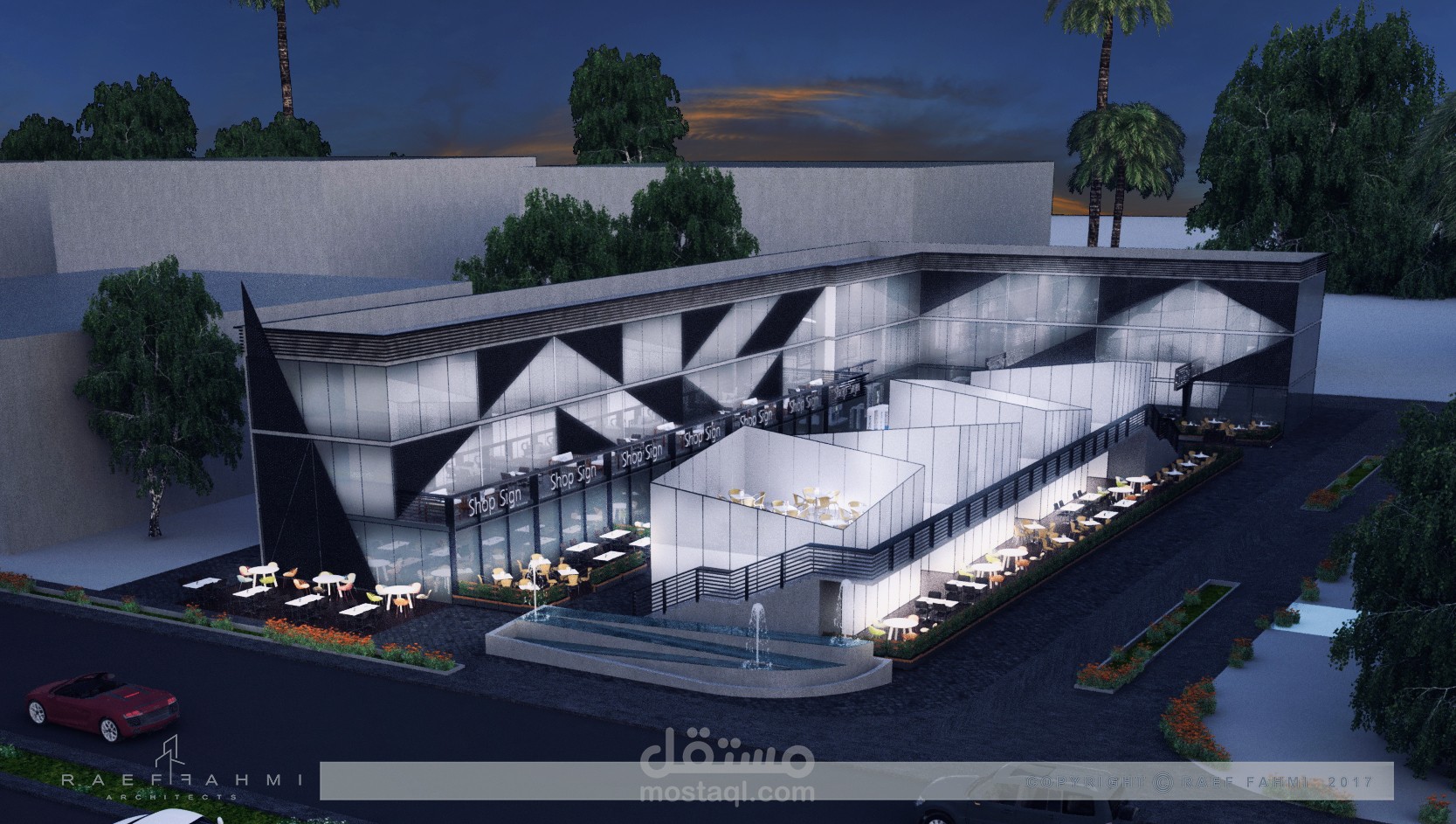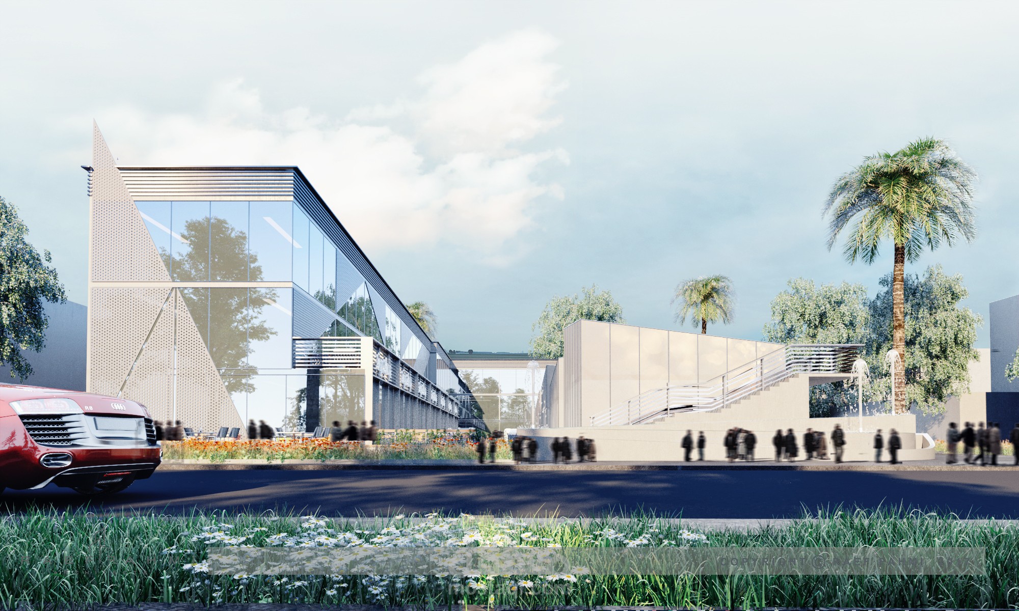 التصميم يحتوي علي تشكيل ديناميكي و يتميز بموجود اماكن للتجول خارجية و داخلية من خلال ممرات معلقة خارجية و مفتوحة علي مستوى الأرض.
