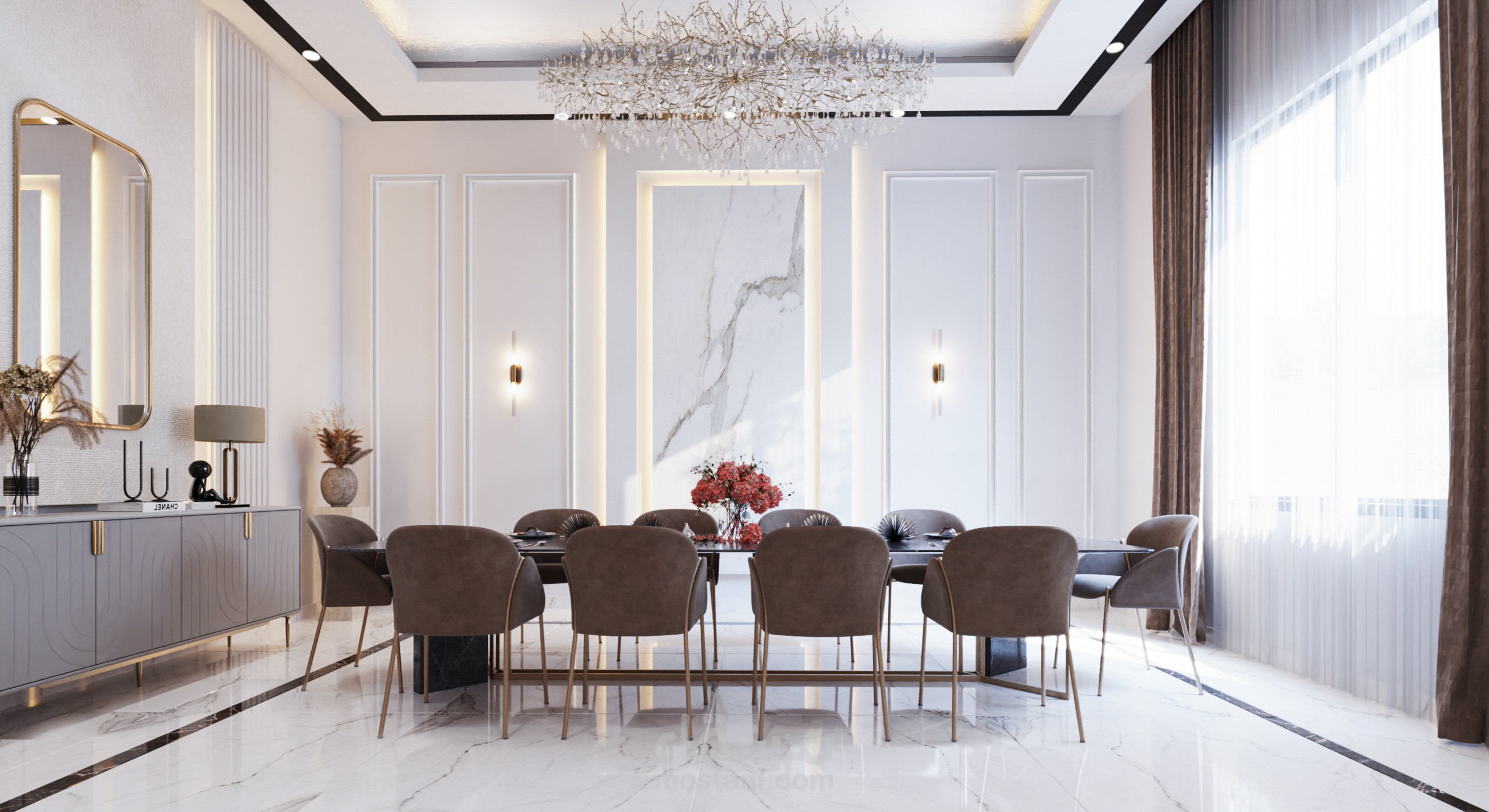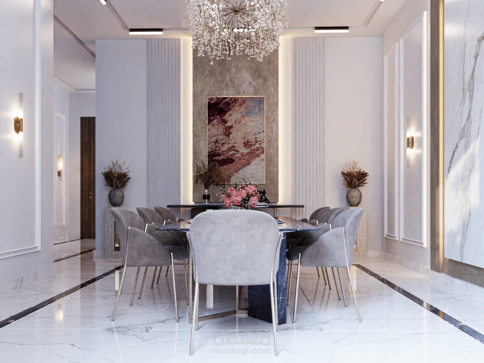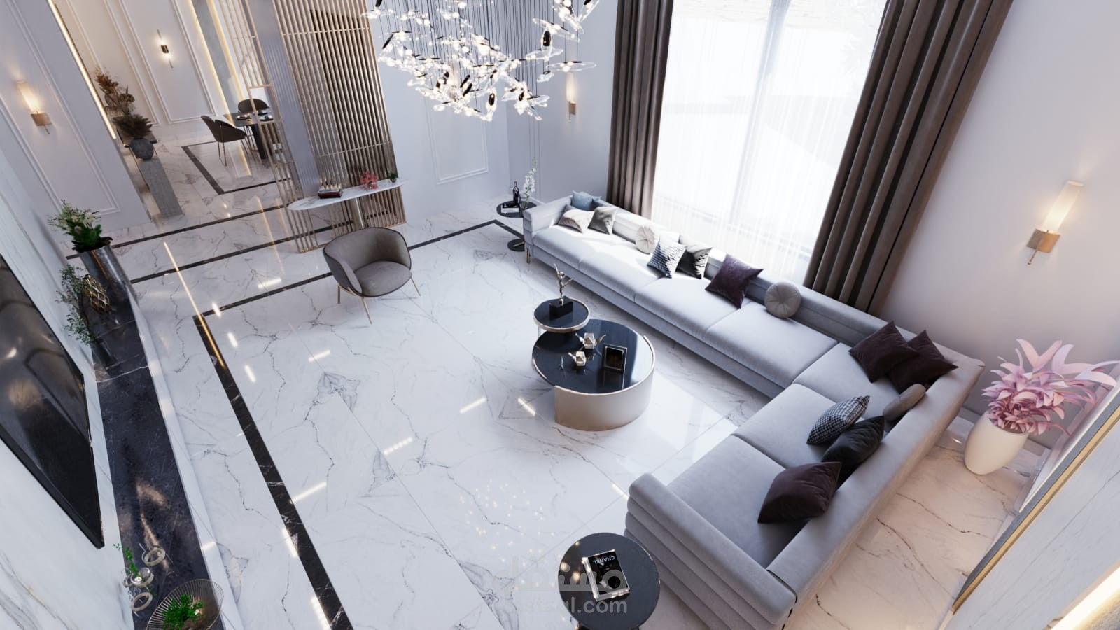 تصميم انتيريور ديزاين لمعيشة وصالة استقبال - تصميم نيوكلاسيك - قسيمة ٤٠٠ م - منطقة المطلاع - الكويت