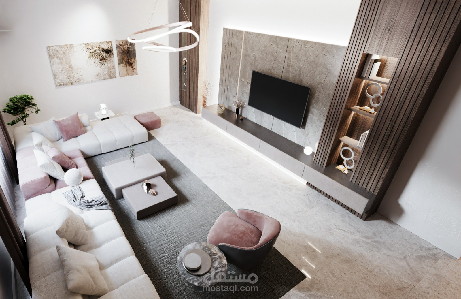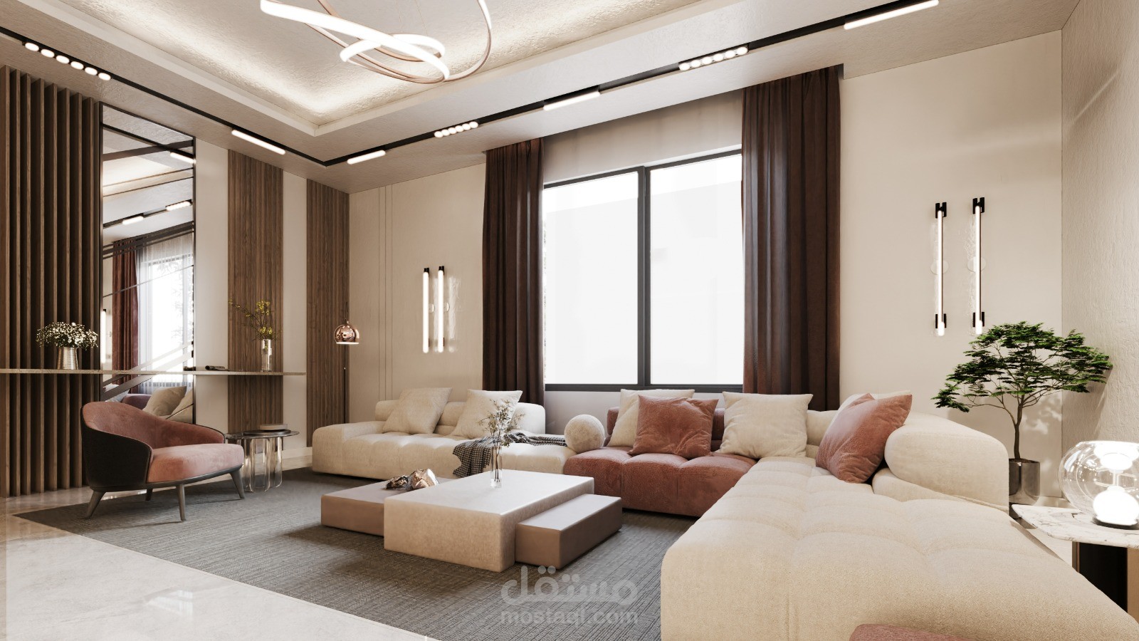 تصميم داخلي لمعيشة مودرن - قسيمة ٤٠٠ م٢ - المطلاع - الكويت