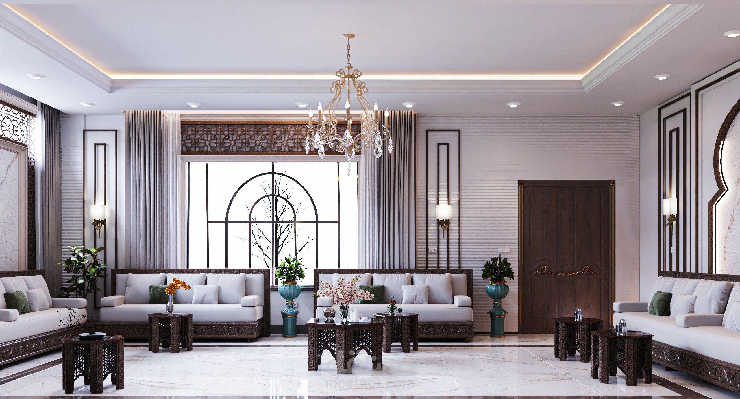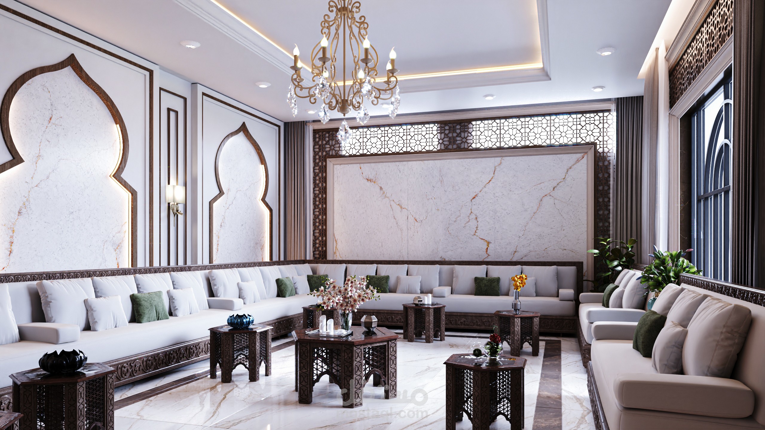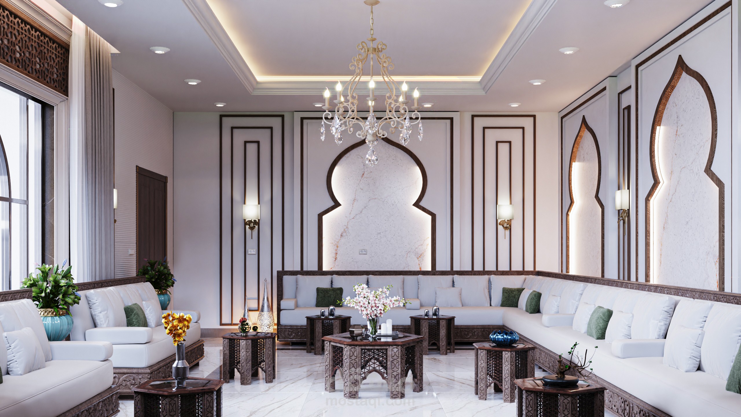 تصميم داخلي لديوانية (مجلس رجال) بقياس ٦ * ٩ م في منطقة المطلاع -تصميم كلاسيك اسلامي - الكويت