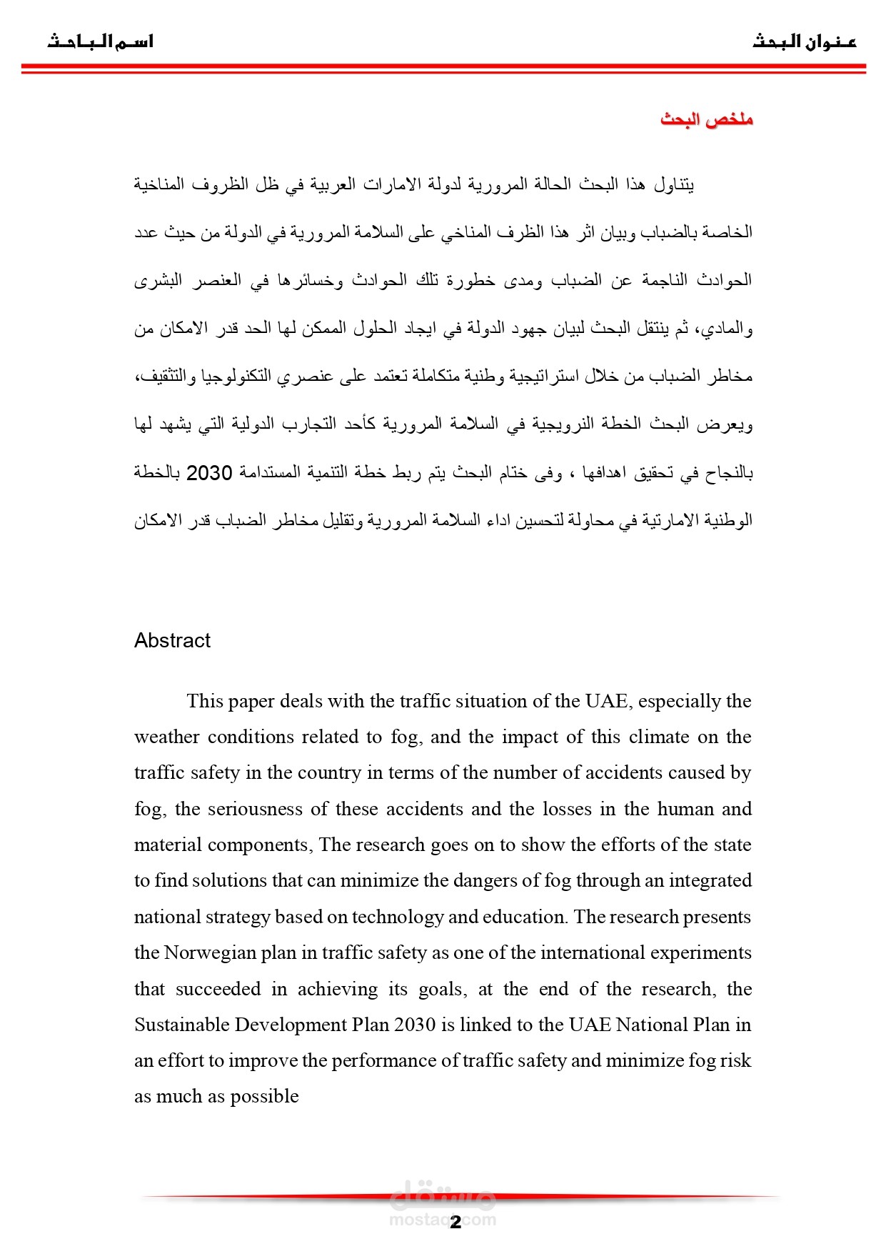 مقتطفات من بحث استراتيجية دولة الامارات لمواجهة حوادث الطرق بسبب الضباب (في ظل التجارب الدولية السابقة وخطة التنمية المستدامة 2030)
