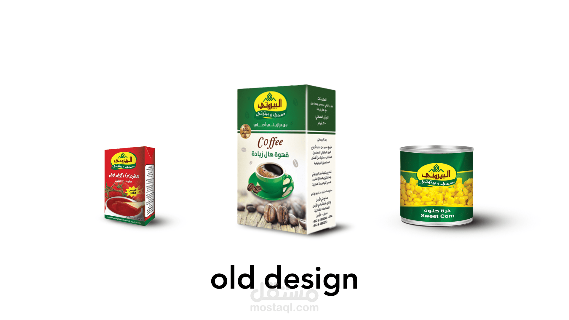 تم عمل التصاميم لحل مشكلة وجدتها في التصاميم الاساسية للمنتجات البيروتي كنوع من التدريب، المشكلة في التصاميم القديمة كانت تشتت المشتري وغياب التوحيد للهوية البصرية من الالوان الى الخطوط وتكوين التصميم بشكل عام .