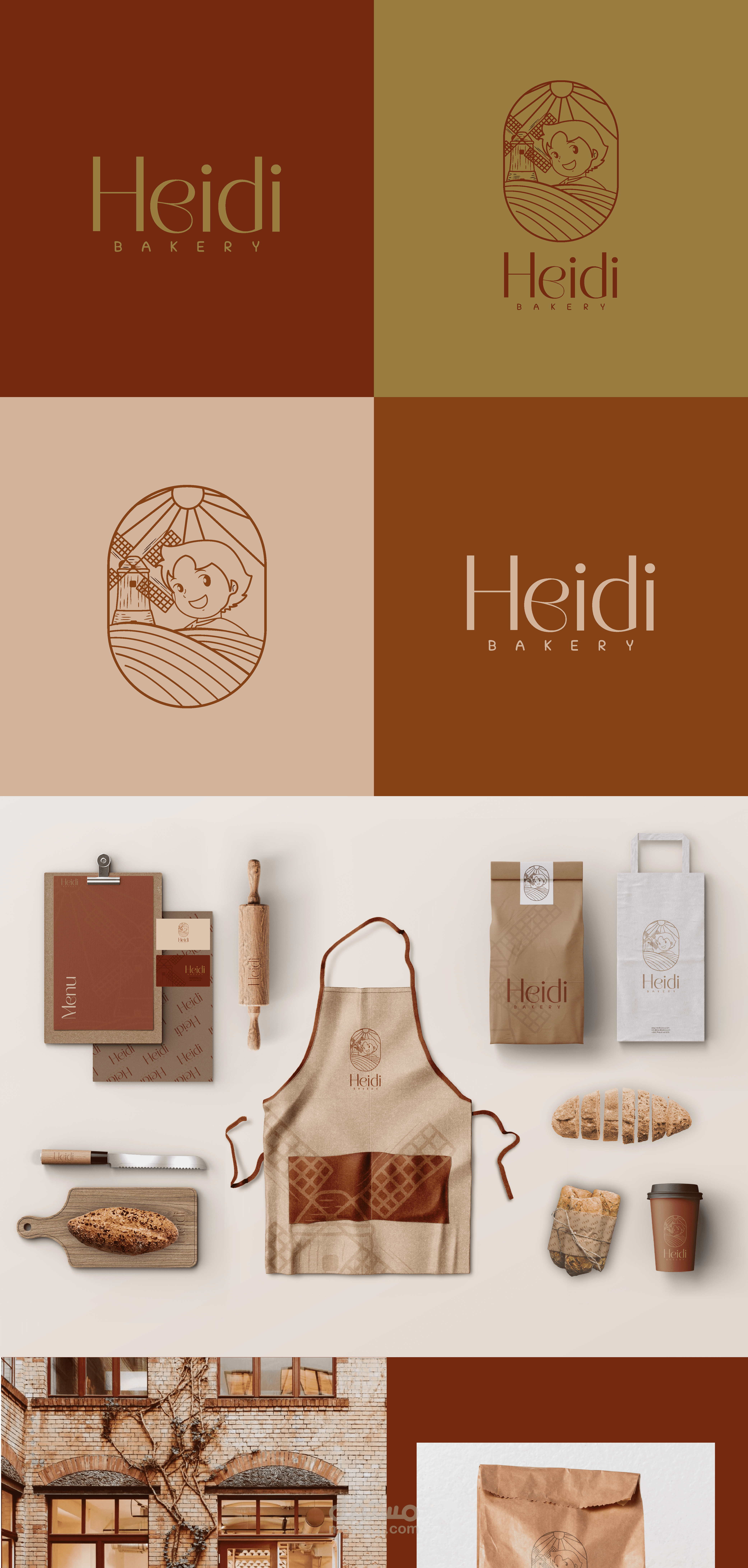تم بناء الشعار باستخدام هدة عناصر : صور هايدي - الطاحونة - التلال