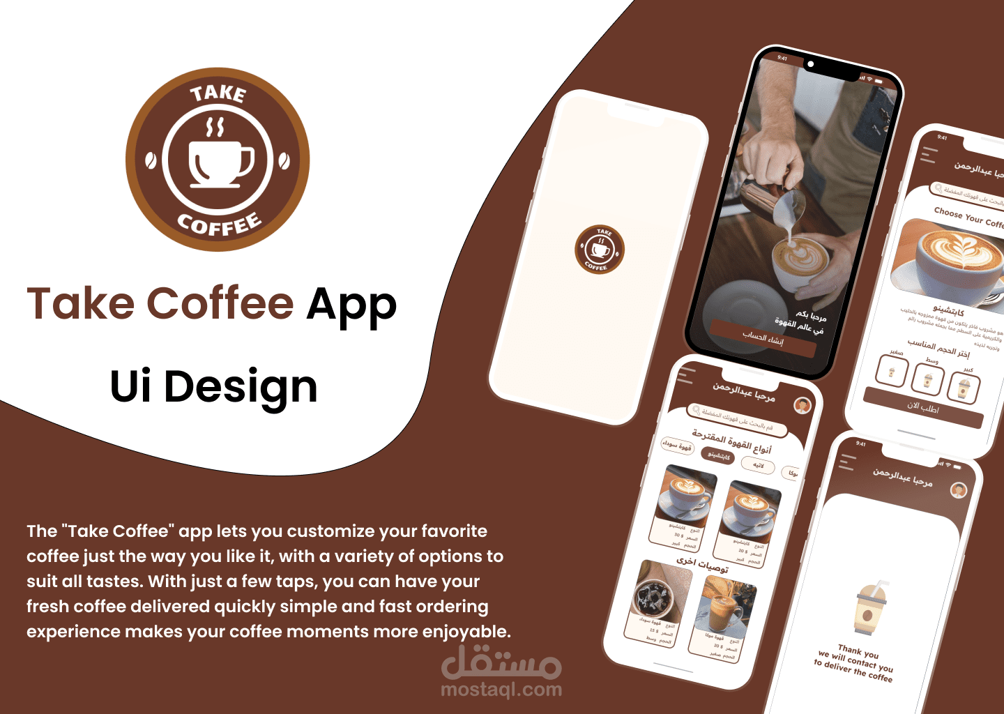 تطبيق Take Coffee هو تطبيق مصممم لتقديم تجربة مريحة وسريعة لطلب القهوة والمشروبات الساخنة والباردة من المقاهي المختلفة. يهدف التطبيق إلى تلبية احتياجات محبي القهوة من خلال تمكينهم من طلب مشروباتهم المفضلة واستلامها مباشرة أو توصيلها إلى مواقعهم
