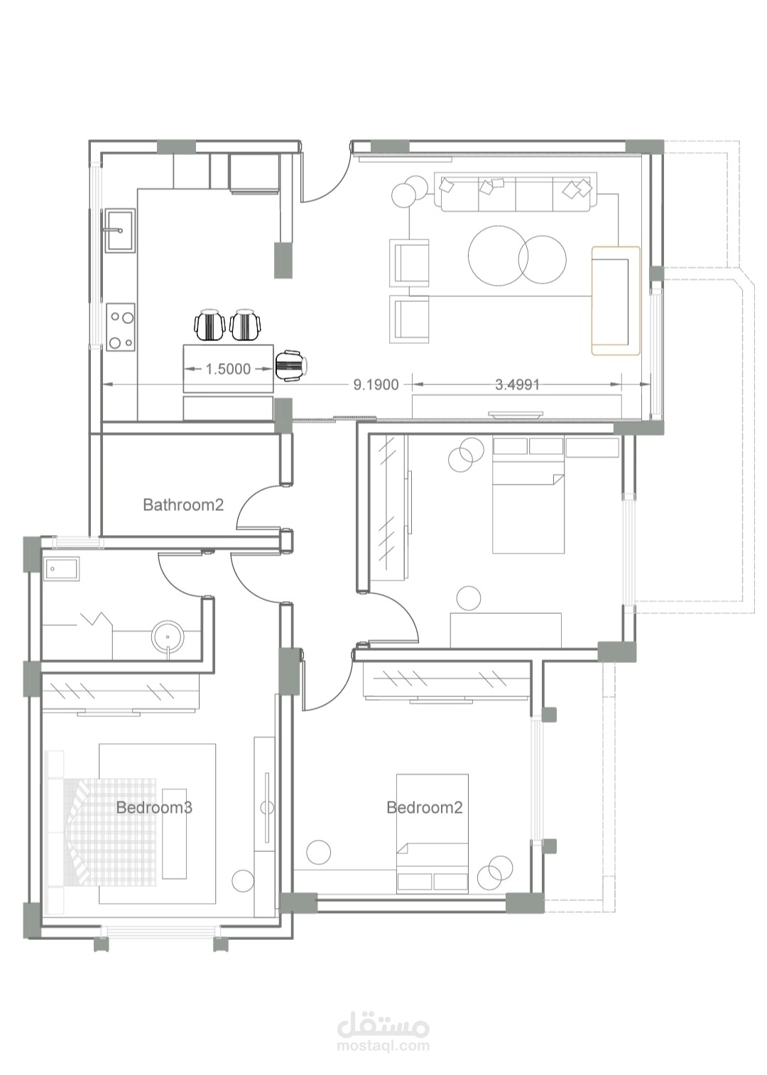 مسقط افقي و تصميم داخلي لشقة سكنية