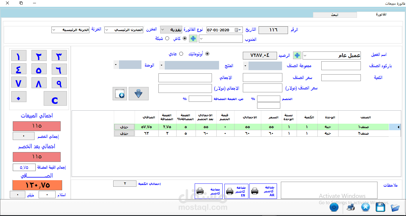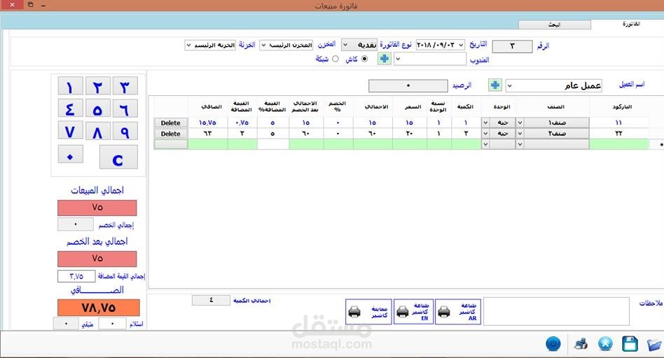 * دعم الباركود قراءة وطباعة * دعم ضريبة القيمة المضافة