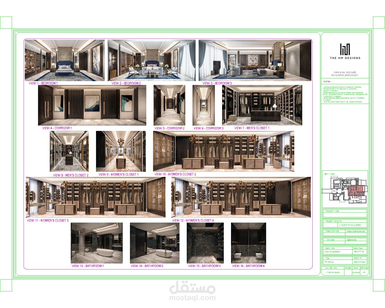 جزء من مشروع عبارة عن غرفة ماستر مع حمام ودرسنج لفيلا بالسعوديه مع رسم كافة تفاصيل التنفيذ ( المعروض جذء من التفاصيل وليست التفاصيل كاملة )