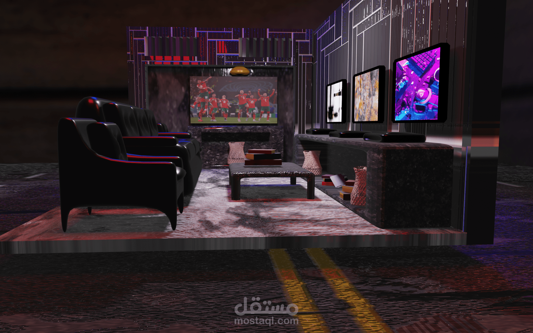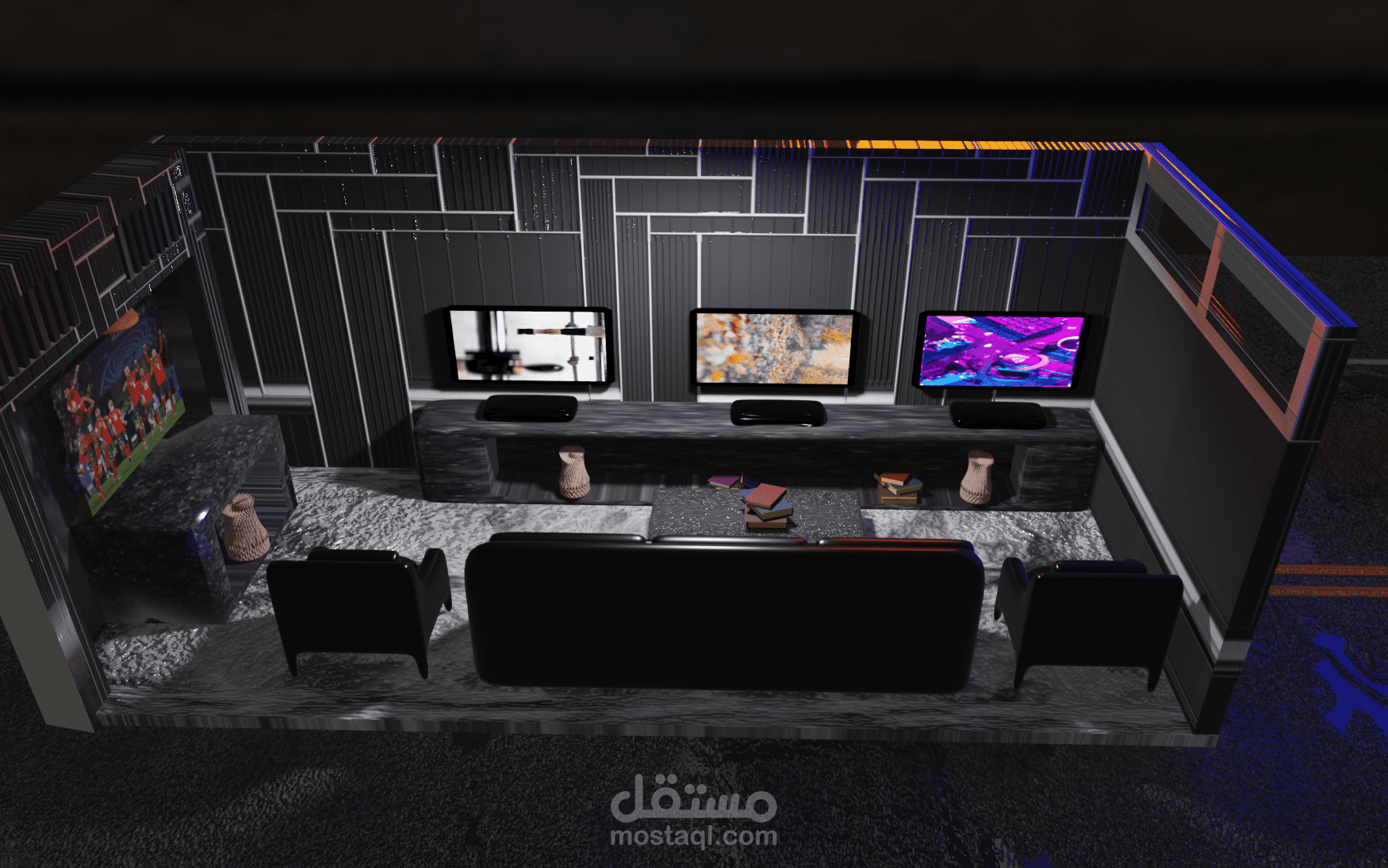 غرفة بلايستيشن صغيرة ثلاثية الأبعاد .