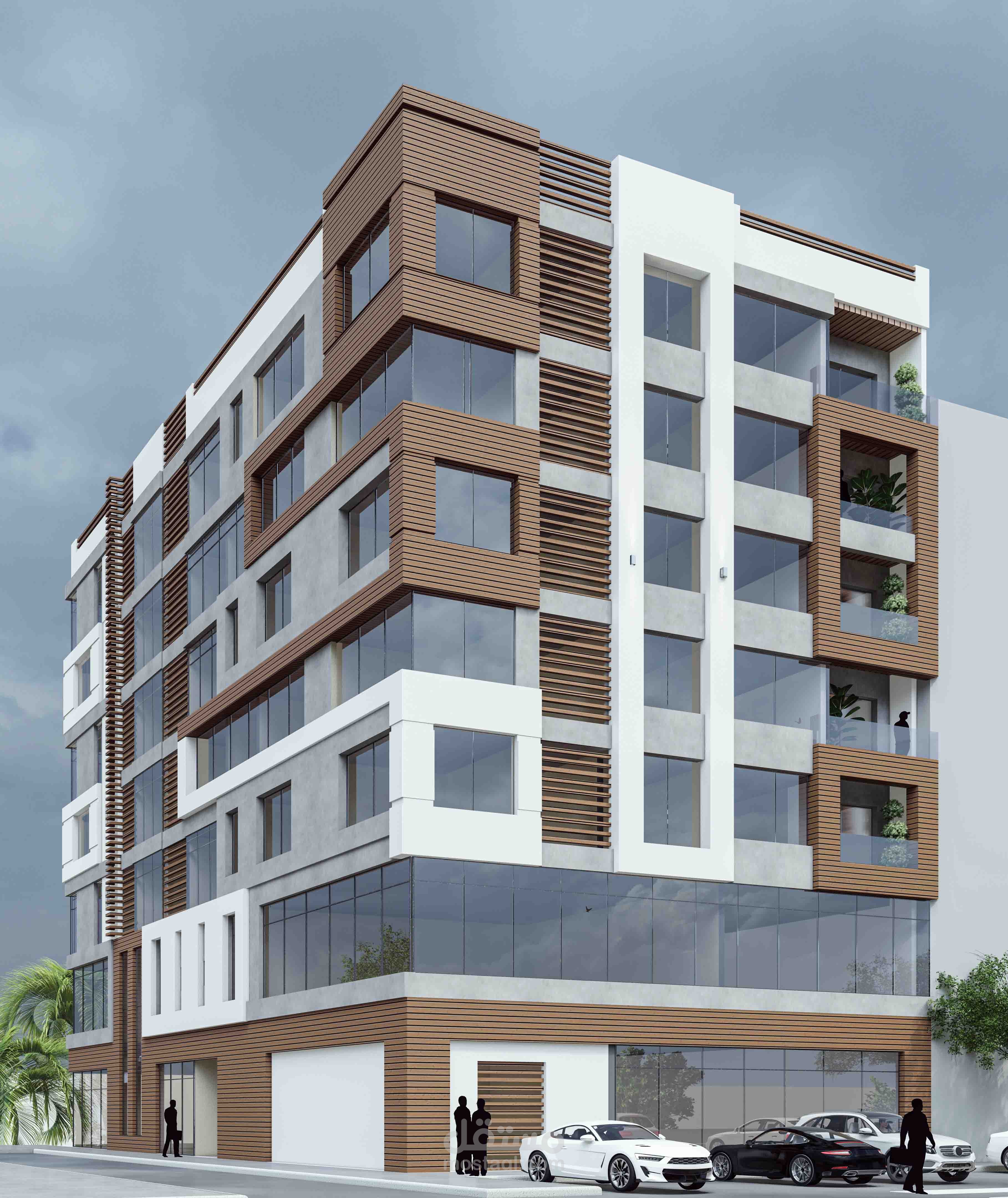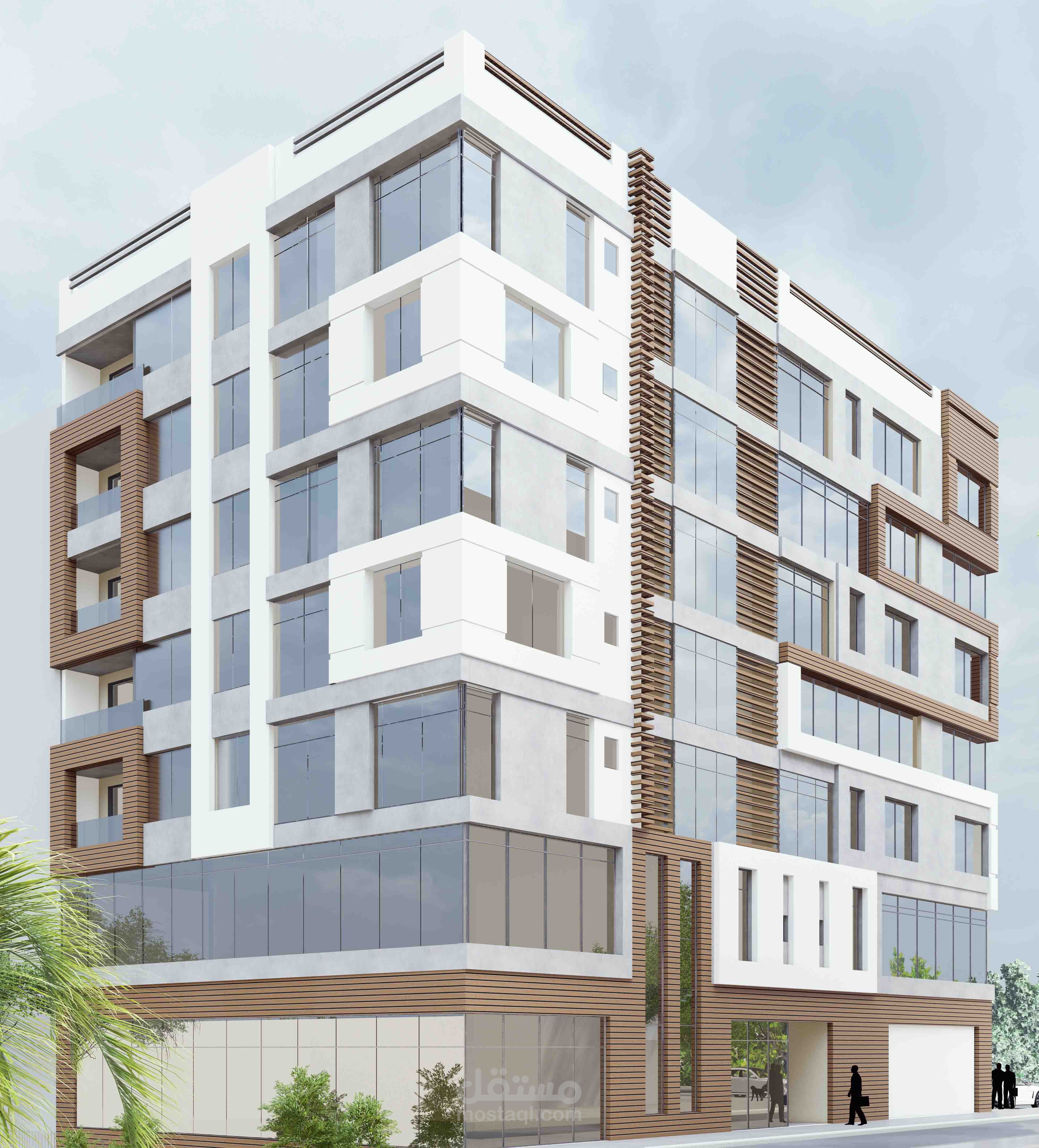 تصميم الواجهات المعمارية لمبنى سكني تجاري في الخوير , سلطنة عمان .