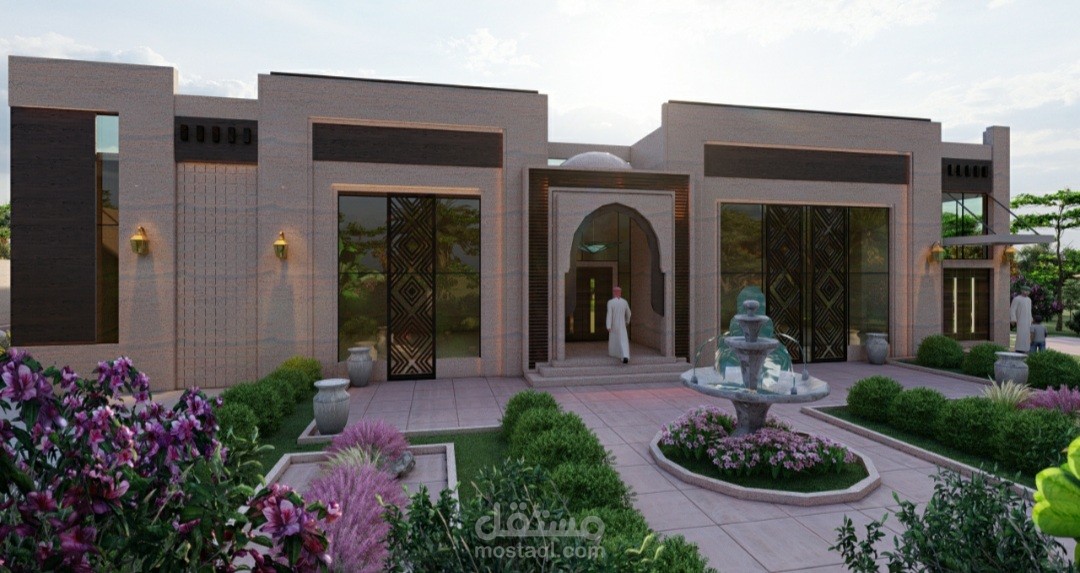 تصميم فيلا خاصة بطراز إسلامي حديث في ولاية عبري ، سلطنة عمان.