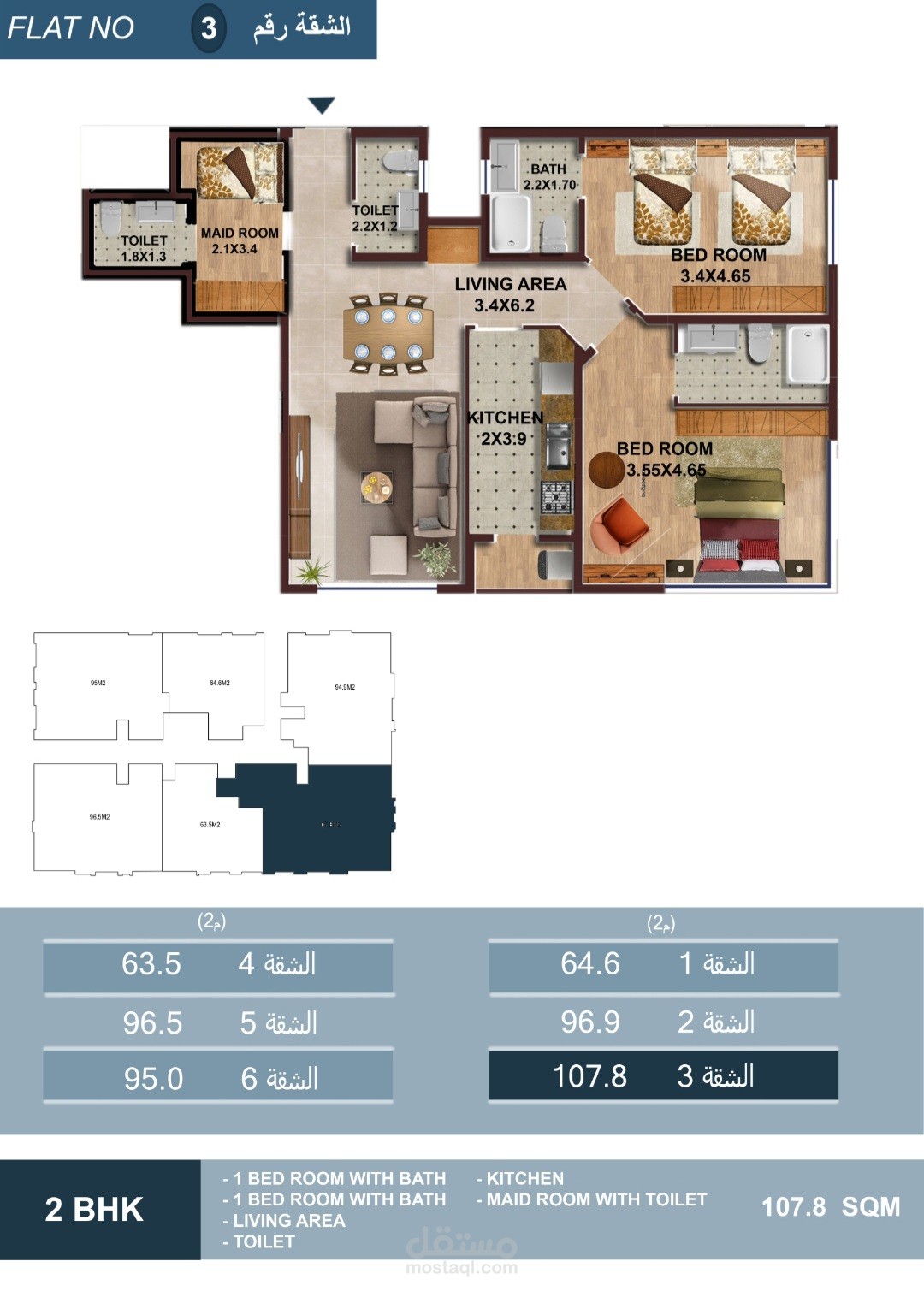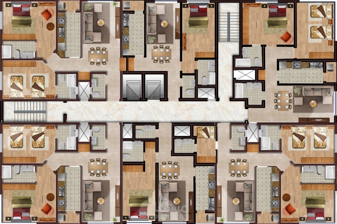عمل فرش داخلي لمبنى سكني وإظهار كل وحدة بتفاصيلها على حده. بالإضافة إلى عمل مفتاح خريطة مصغر بجانب كل وحدة لتوضيح موقعها على المخطط. وأيضا تم ذكر مساحات الوحدات السكنية منفصلة مع خصائص كل منها بطريقة عرض منظمة. والهدف من عمل هذا الإظهار لنماذج الوحدات هو لتسهيل عملية عرض الشقق والوحدات السكنية تجاريا وتسهيل عملية البيع.