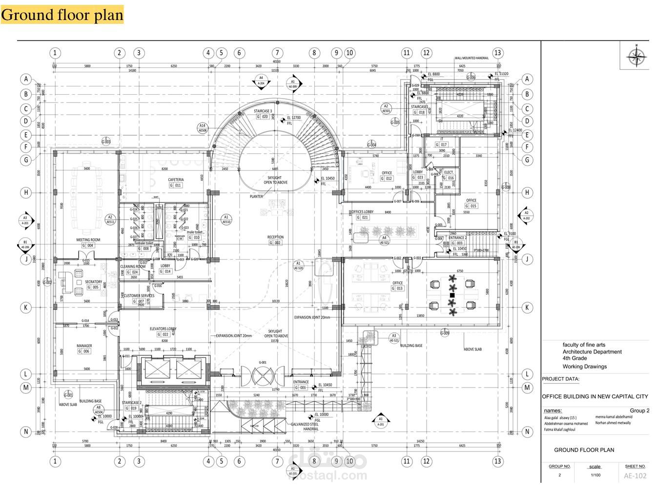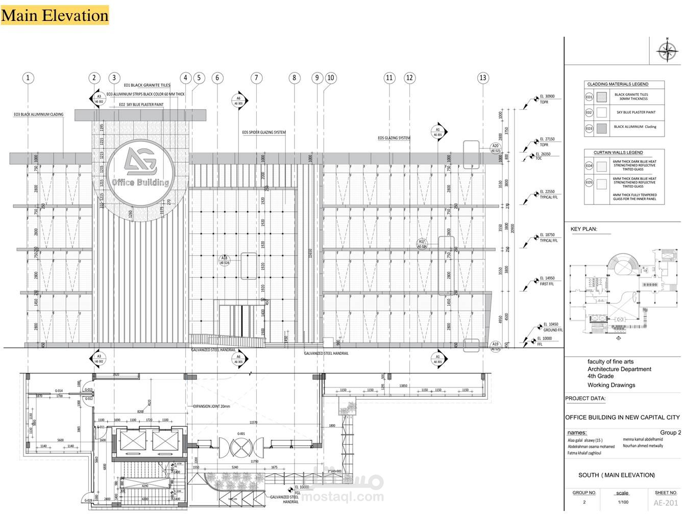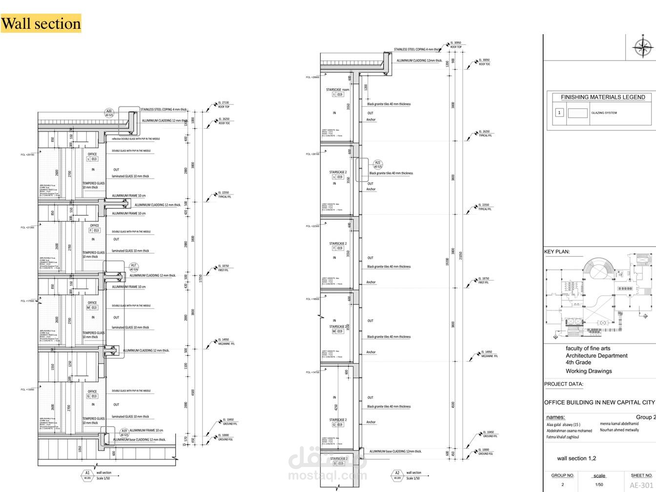 مشروع جماعي لتصميم مبني اداري في العاصمة الادارية الجديدة (مشروع تخرج مادة التصميمات التنفيذية )