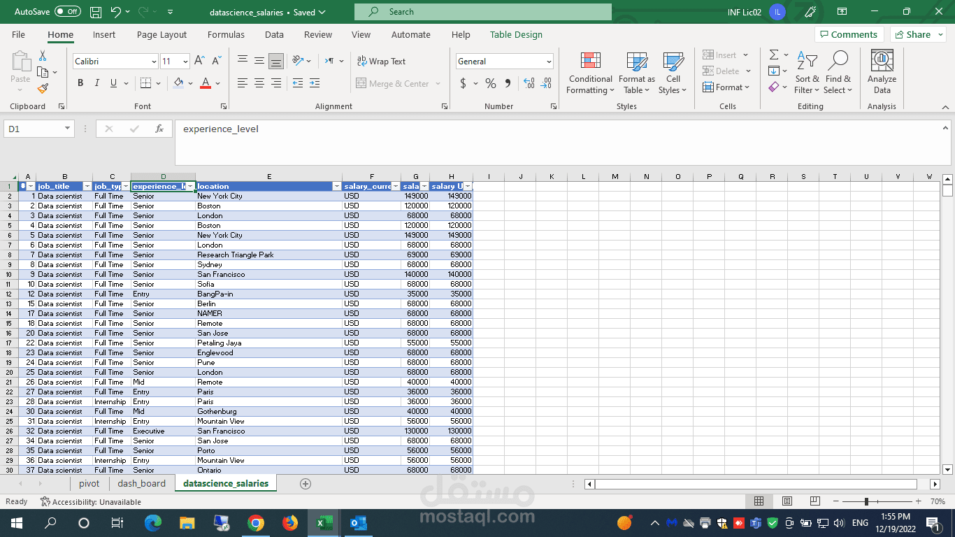 تم انشاء داش بورد بسيط يلخص ما يخص مجال البيانات فى الفترة الاخيرة من حيث الراتب وغيره .