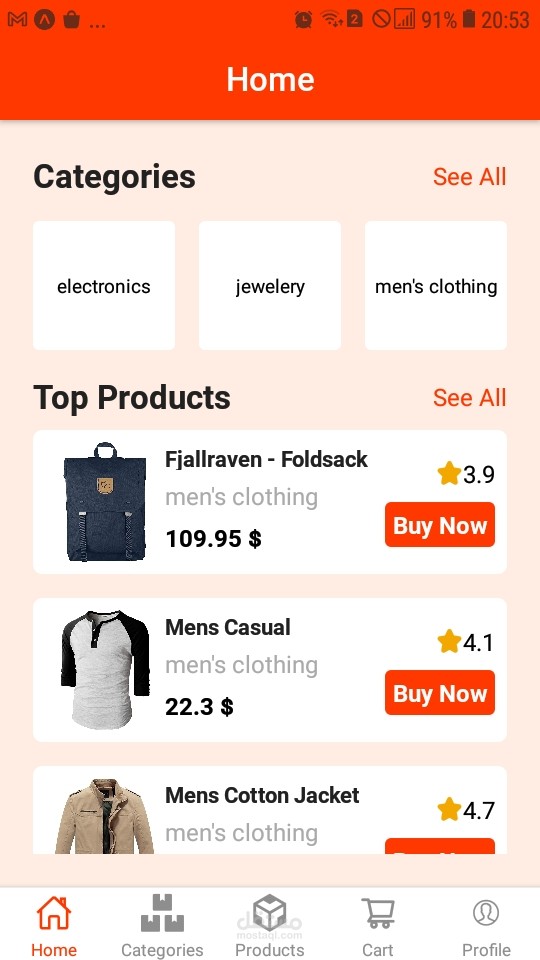 تطبيق للتسوق الإلكتروني بإستخدام react native