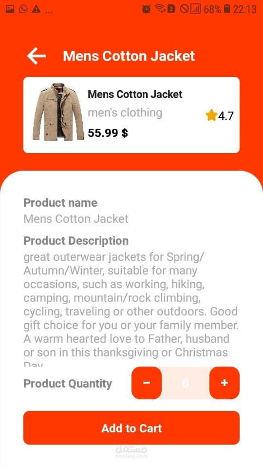 يسمح للمستخدم لإنشاء اكونت ، تصفح المنتجات و اضافتها الي السلة ثم ارسال طلب شراء