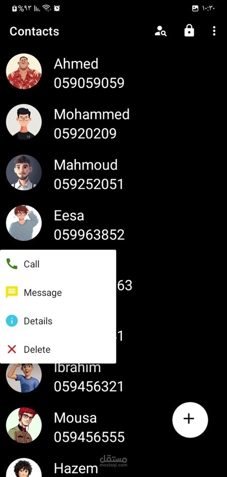 تطبيق جهات اتصال, صور التطبيق توضح الوظائف التي يمكن أن يؤديها