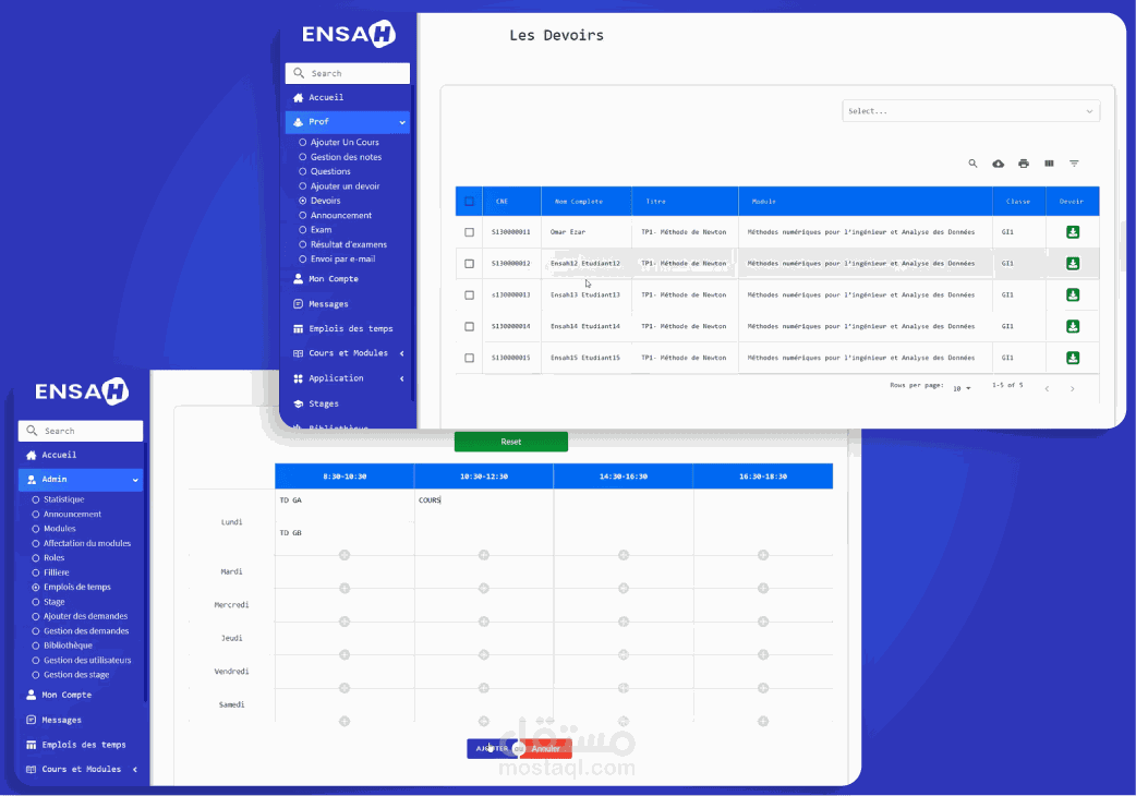 تطبيق من صفحة واحدة لإدارة احتياجات المدرسة (إدارة الجدول الزمني ، الدورات ، الأدوار ، الواجبات المنزلية ، وإمكانية الدردشة بين المستخدمين ، إلخ).