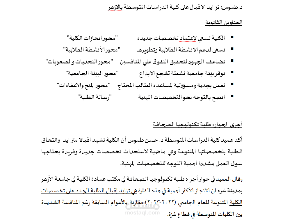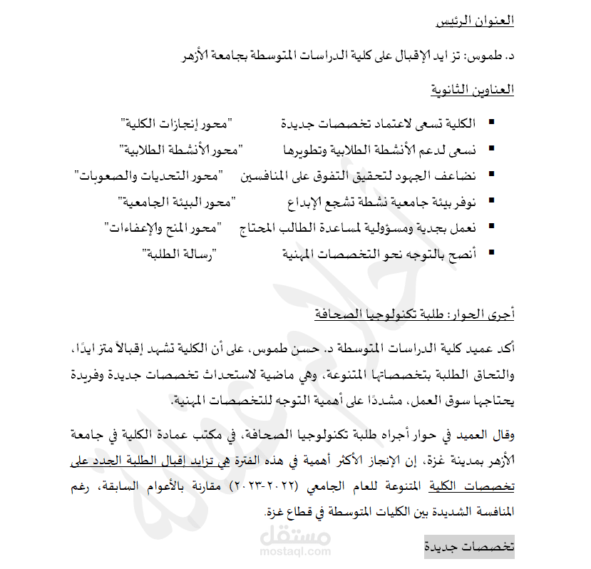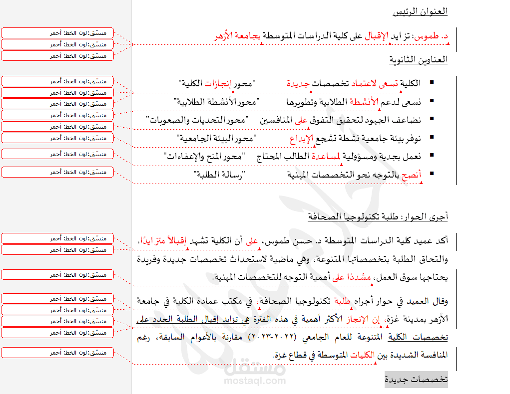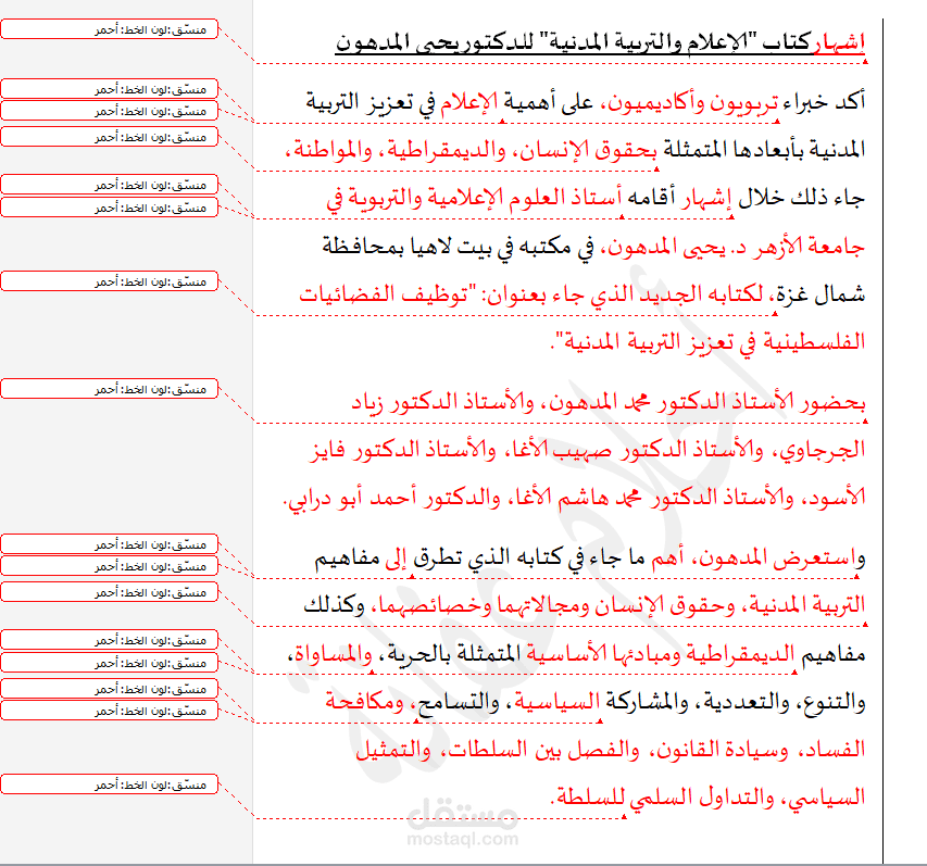 مع توظيف علامات الترقيم وضبطها، لكافة أنواع النصوص، والمقالات، والأبحاث