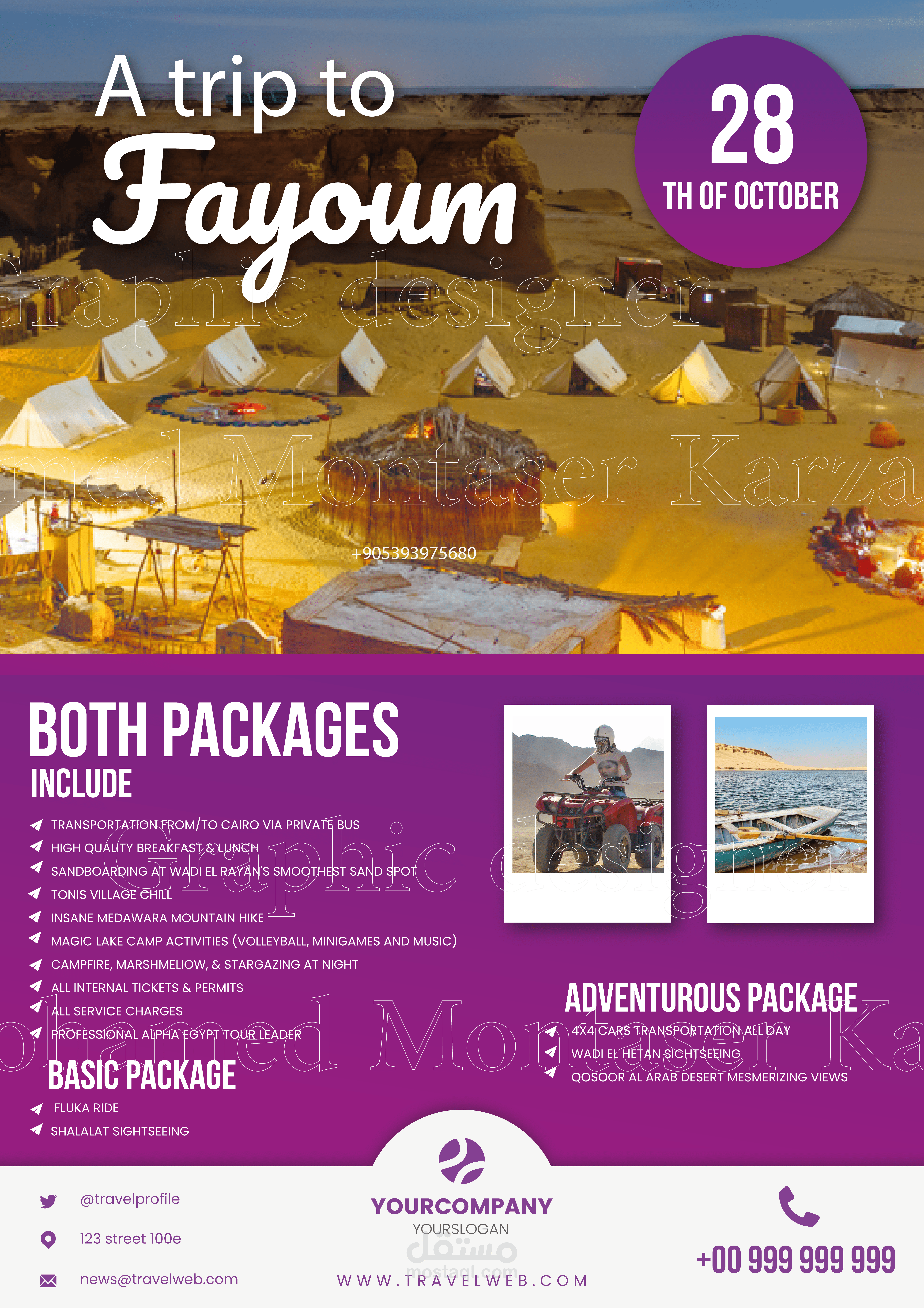فلاير إعلاني لرحلة سياحية إلى الفيوم في مصر