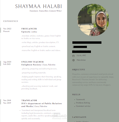 أنا هنا لمساعدتك في كتابتها بطريقة إبداعية ومرتبة حسب تاريخ انجازاتك وخبراتك، فقد قمت بكتابتها لكثير من الزبائن وحصلت على تقييمات ممتازة حيث أنني اصممها أيضا بطريقة جذابة ومرتبة.