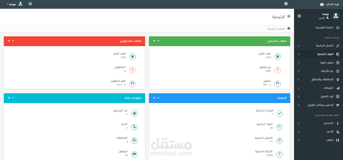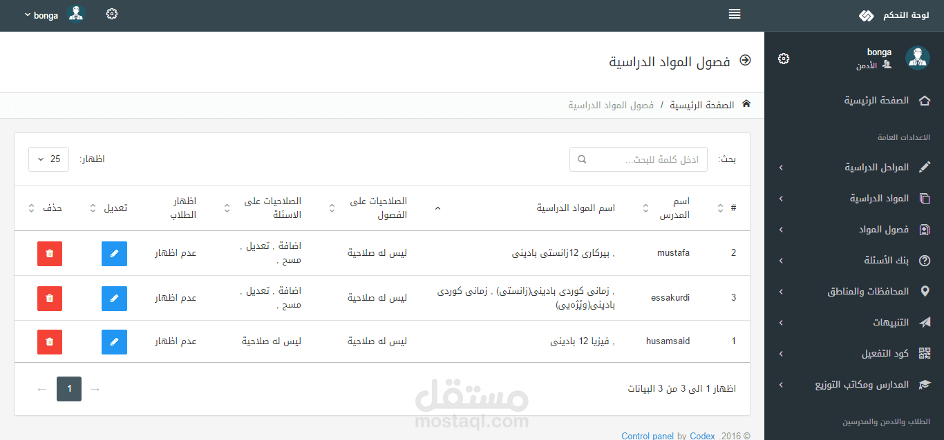 لوحة التحكم الخاصة بتطبيق Amaday بحيث يمكنة التحكم فى كل خصائص التطيق عن طريقها