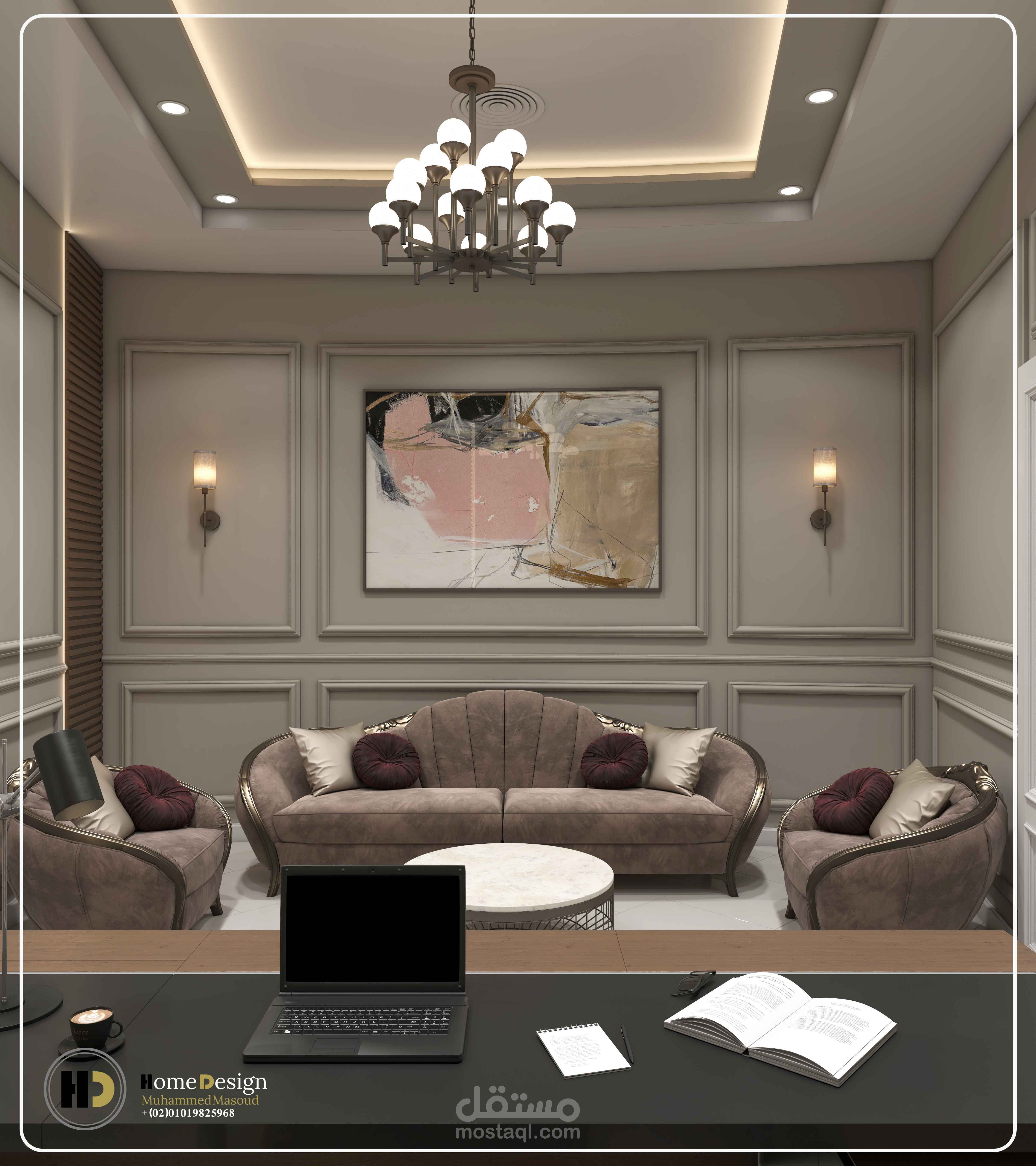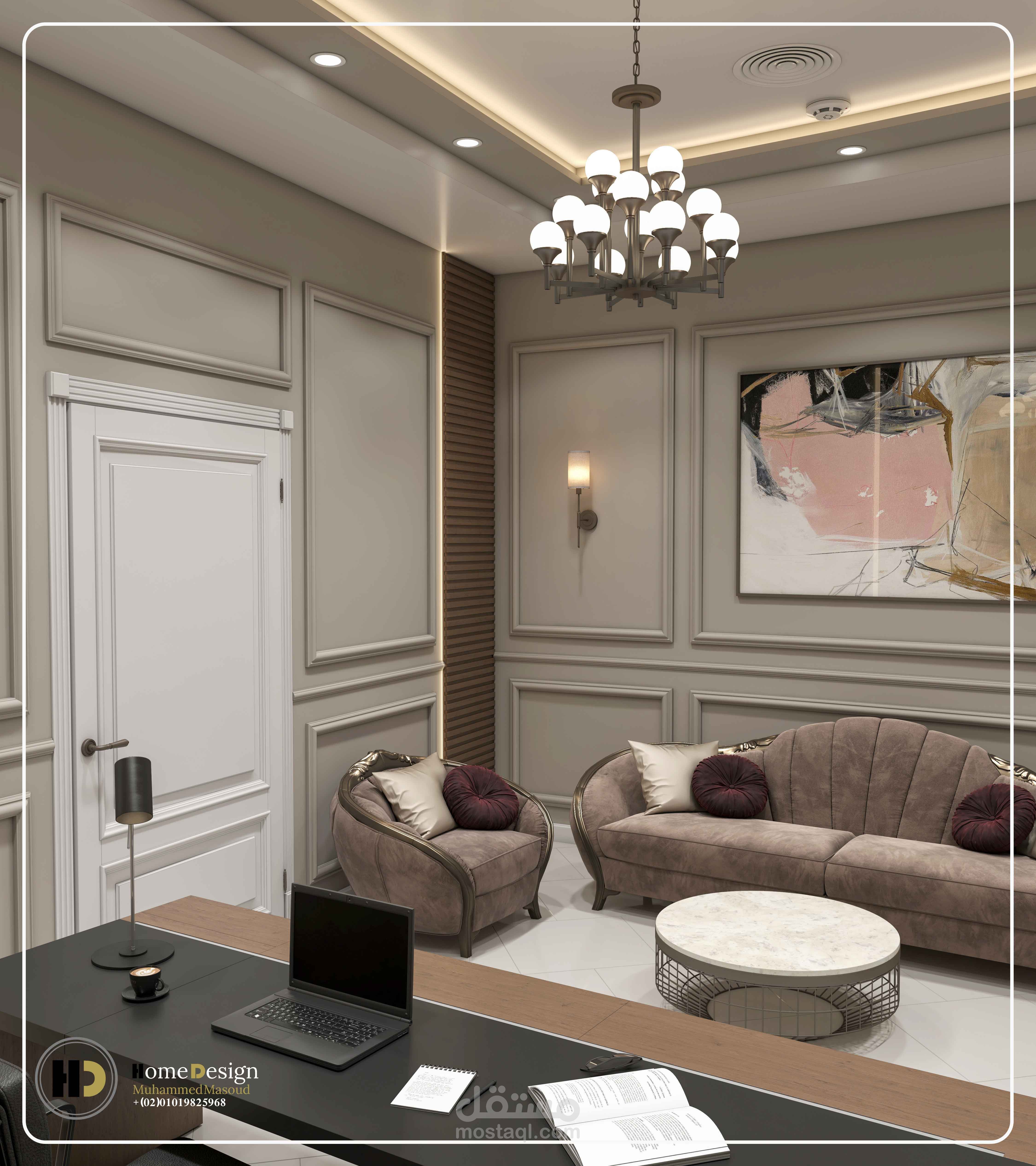 تصميم بسيط لمكتب على الطراز النيو كلاسيك معتمدا على البساطة والتماثل وتحقيق التوازن النفسي