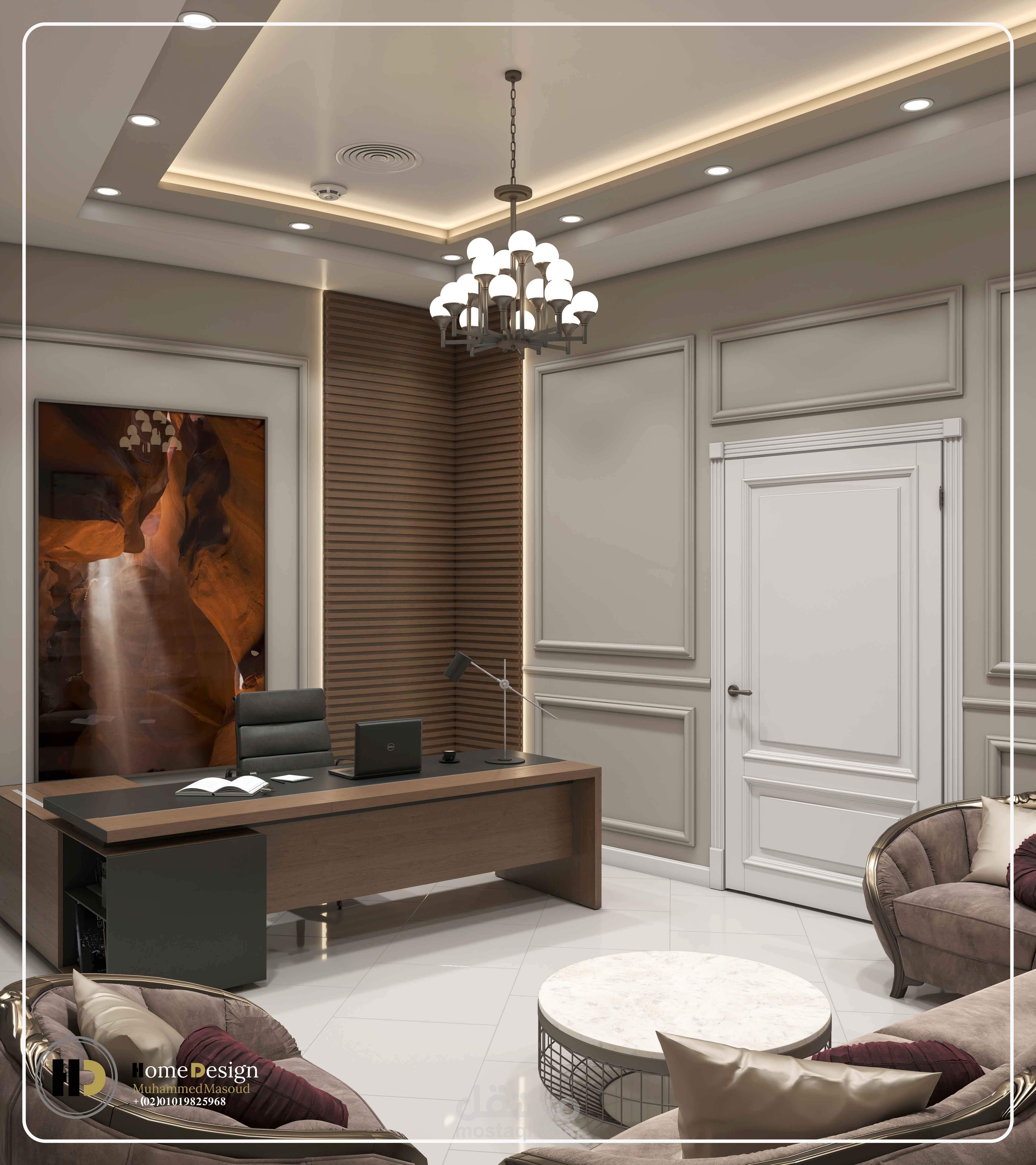 A simple design for a neo-classical office, based on simplicity, symmetry, and psychological balance