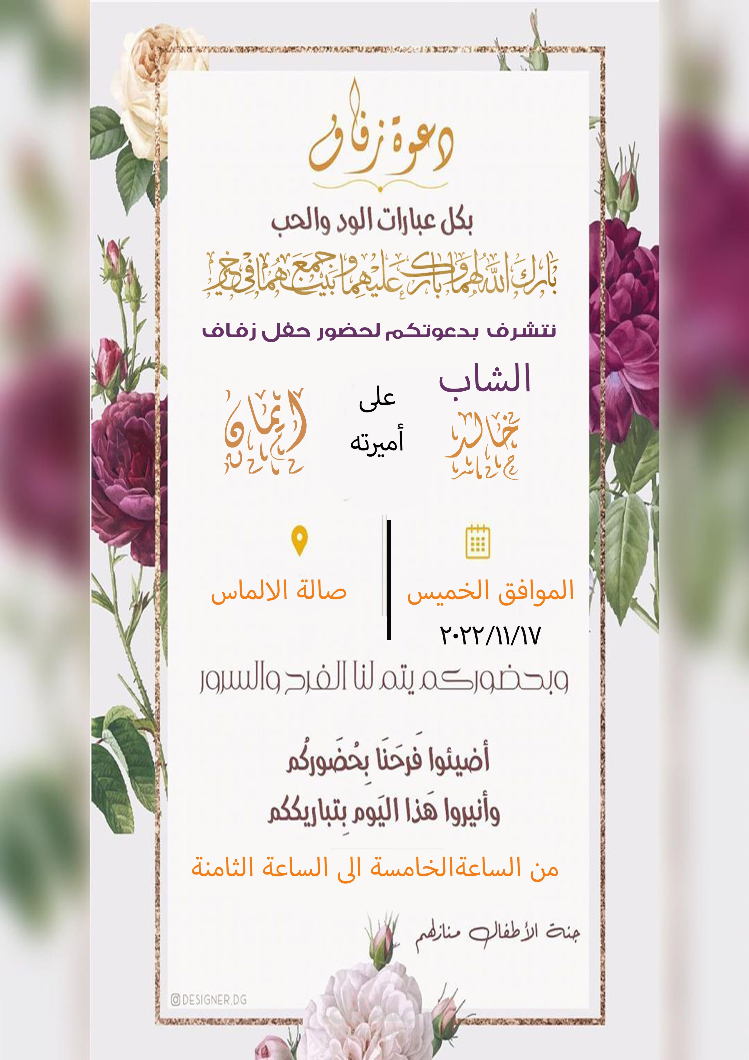 استخدمت الالوان المناسبة في كتابة اسماء الزوجين