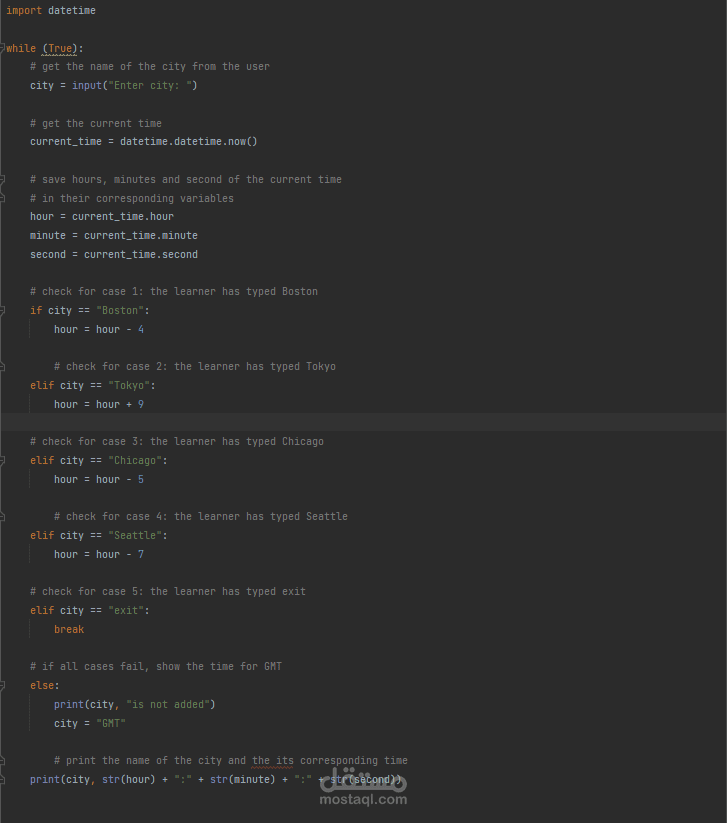 يقوم هذا الكود باستحضار تواقيت المدن التي يطلبها المستخدم