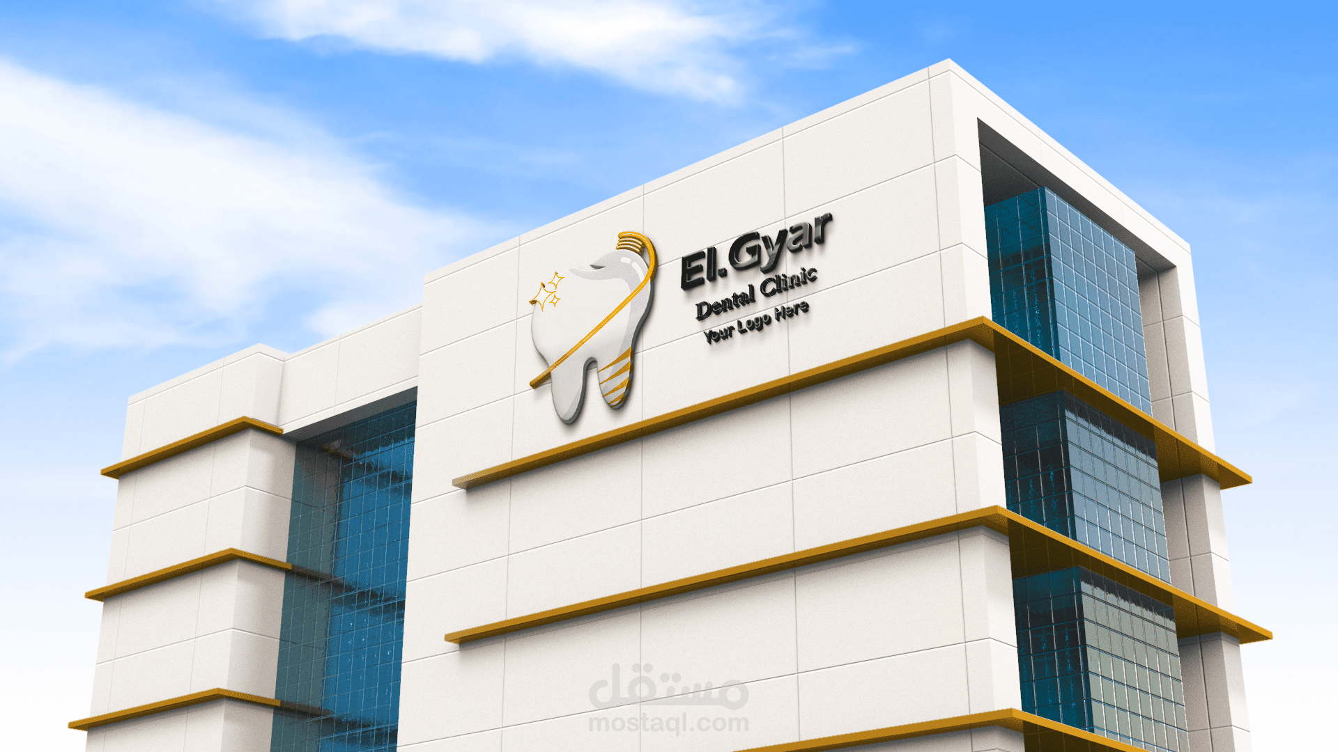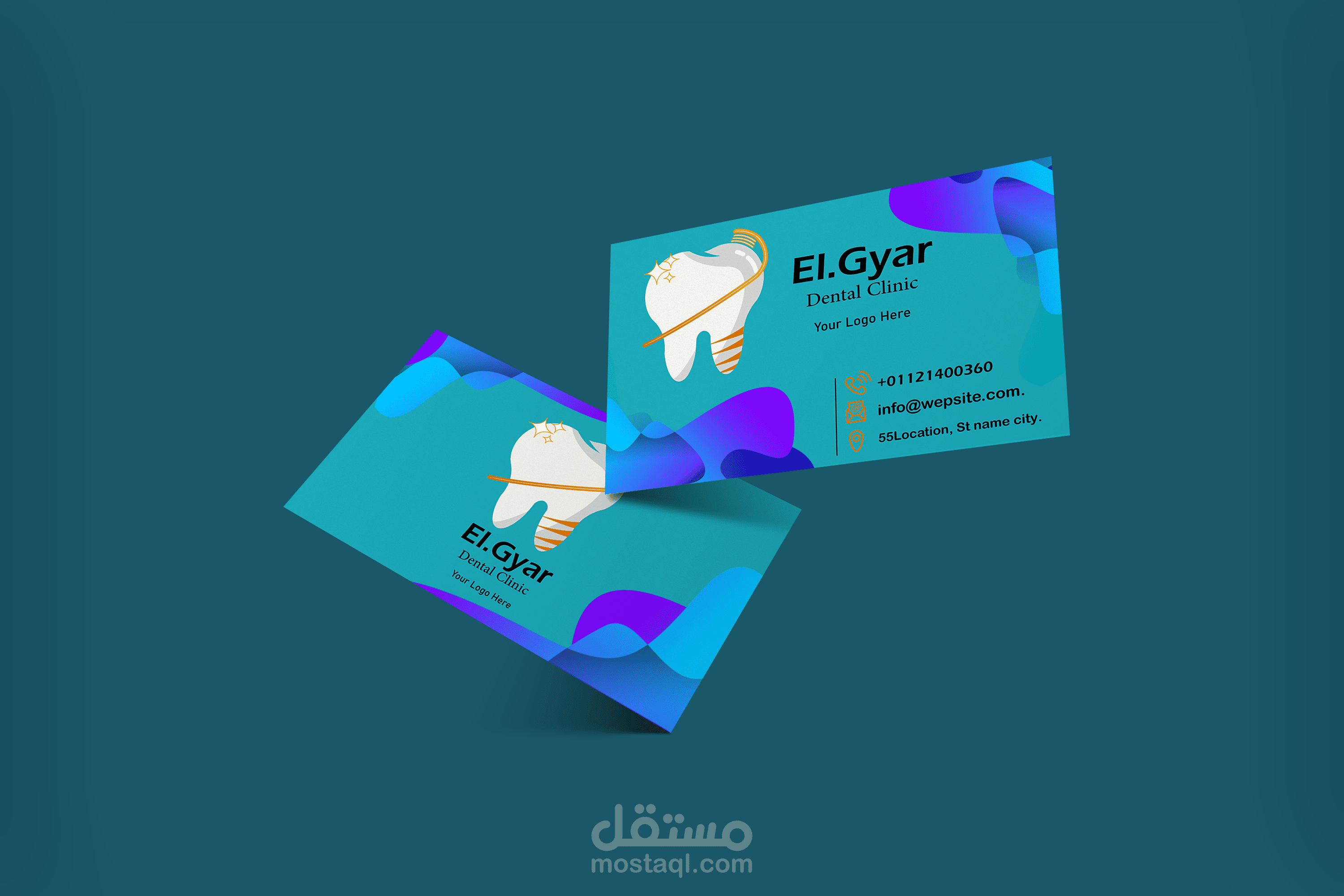 تصميم لعيادة أسنان بأسم El-Gyar عبارة عن دمج شكل الضرس مع فرشاة أسنان عبارة عن هويه بصريه تتكون من لوجو و بطاقه عمل وحقيبه و كأس و أعلام أعلانيه.