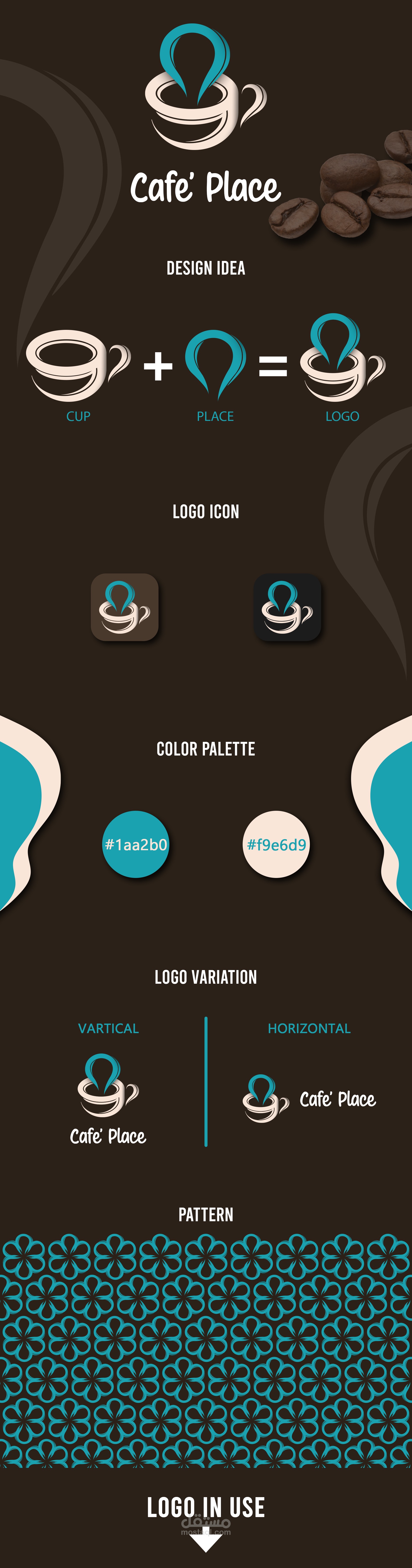 لقد استعملت الفنجان كا شعار للقهوة (’Cafe) مع شعار المكان لوجود (Place) في الاسم